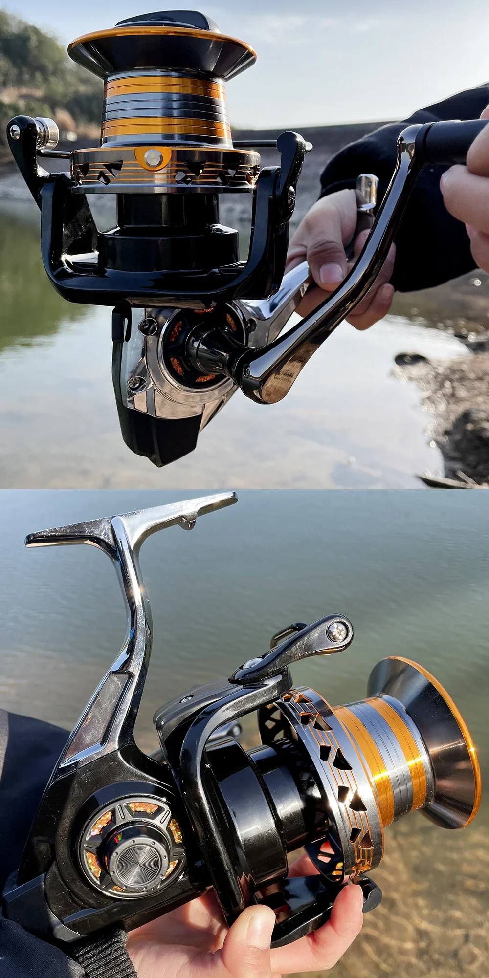 2. Brazo CNC de roca, plegado de contraste y fuerte fuerza de tracción.3. Copa de alambre de tiro largo biselado, la línea de salida es más suave y no daña la línea de pesca4. Mango de goma suave, cómodo y antideslizante.PAQUETE INCLUIDO