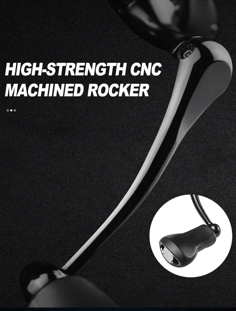 4. El carrete utiliza capacidad de línea estándar, manija de máquina CNC y perilla de aluminio.