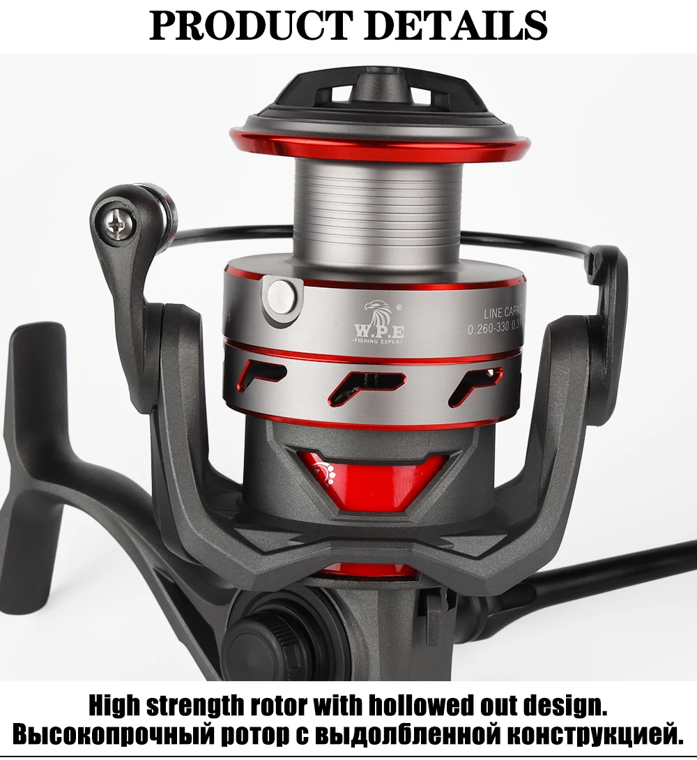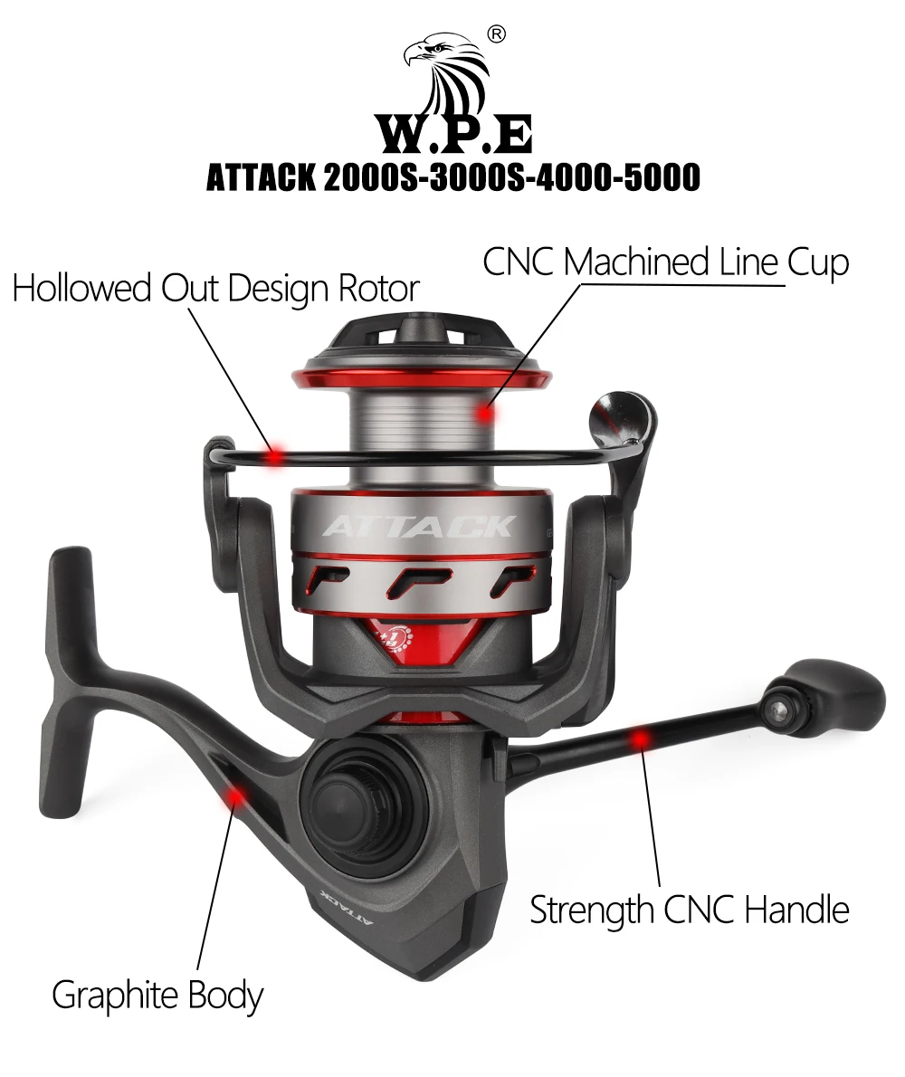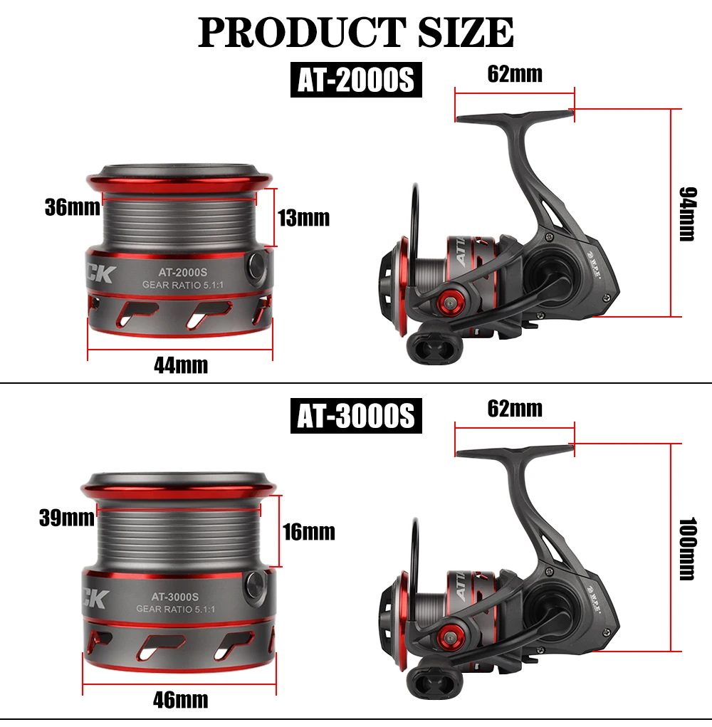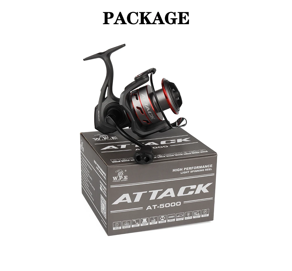 Carrete de pesca giratorio W.P.E AT 2000/3000/4000/5000, carrete de hilo totalmente metálico 7 + 1 BBs 5,1: 1, aparejos de rueda de pesca de alta relación de engranaje