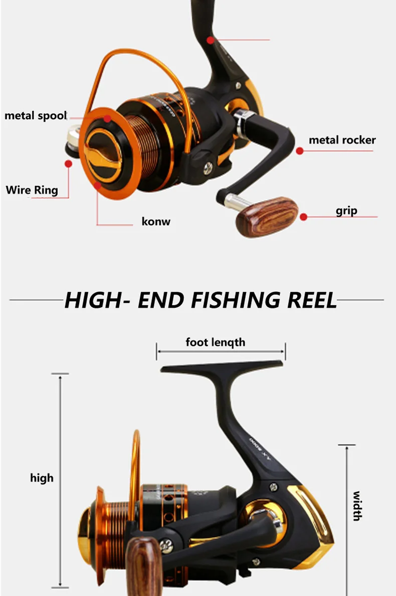 Carrete de pesca GLS AX 2023-1000, agarre de madera 9000: 5,5, 2:1/1/5: 1, carrete giratorio, pesca de carpa para agua salada, novedad de 4,1