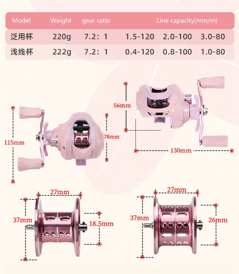 Carrete de pesca GLS color caramelo, carrete de pesca de arrastre máximo de 8kg, relaciones de engranaje 7,2: 1, bobina de pesca de carpa, herramientas de pesca, carrete de fundición