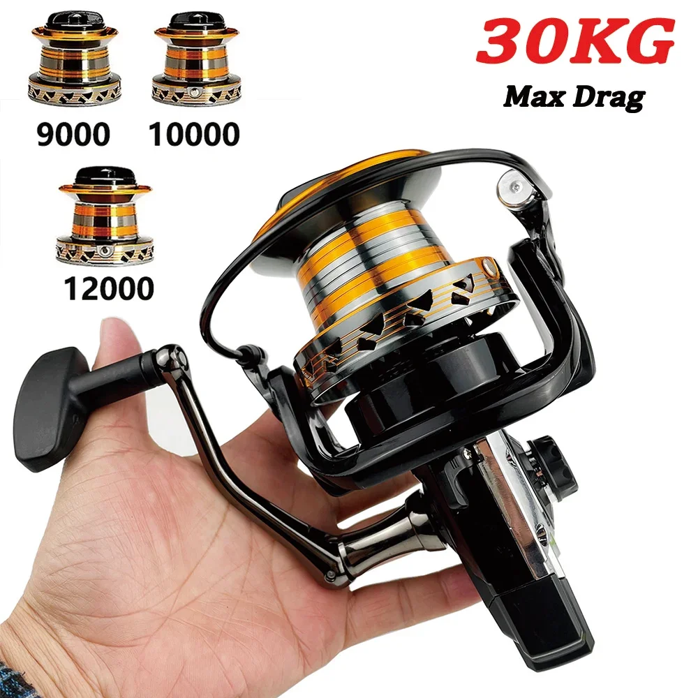 Carrete de pesca de gran capacidad, serie 9000/10000/12000, carrete de Metal, rueda giratoria para pesca en el mar, máximo 30kg, pies de Metal, pies de nailon