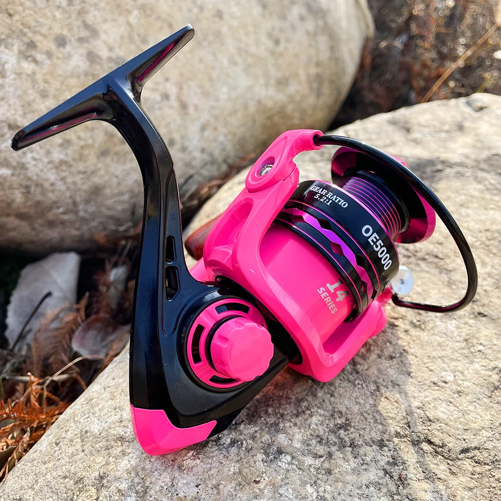 Carrete de pesca de carrete de potencia fuerte de Metal rosa/verde 8Kg rueda giratoria de potencia de arrastre 2000-7000Series carrete de pesca de carpa de agua salada
