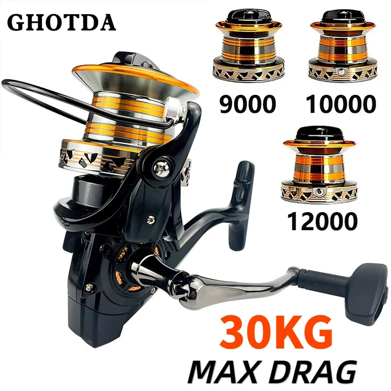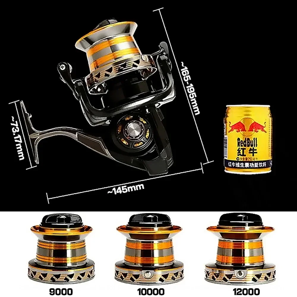 Carrete de pesca grande giratorio serie 9000 10000 12000 arrastre fuerte 30KG rueda de Jigging de fundición larga 4,7: 1 Accesorios de pesca de barco de mar