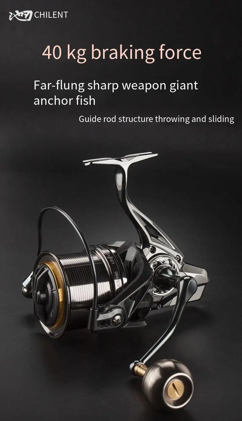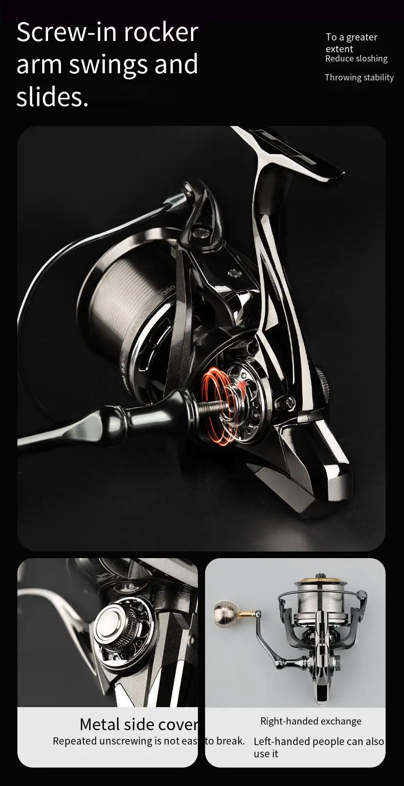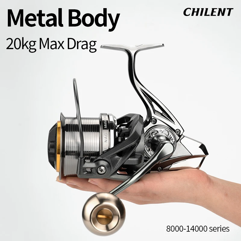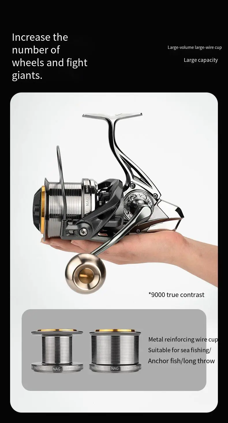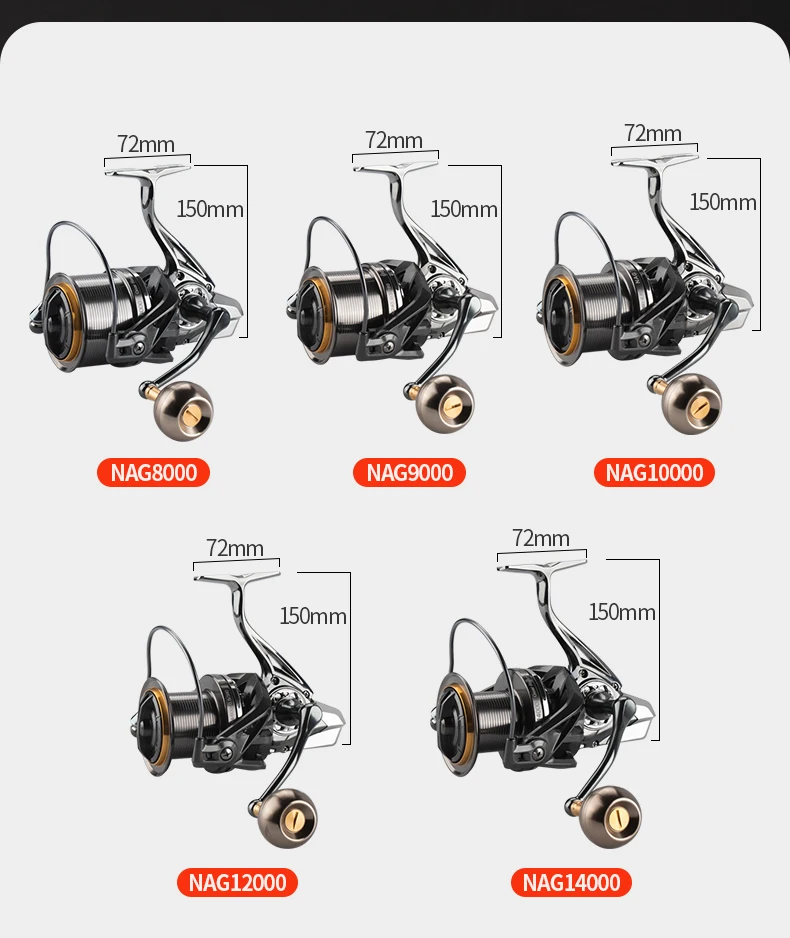 Carrete de pesca grande NAG8000-14000, carrete de cuerpo de Metal, carrete de pesca de agua de mar resistente a la corrosión, 6 + 1Bbs, arrastre máximo de 20KG para peces grandes