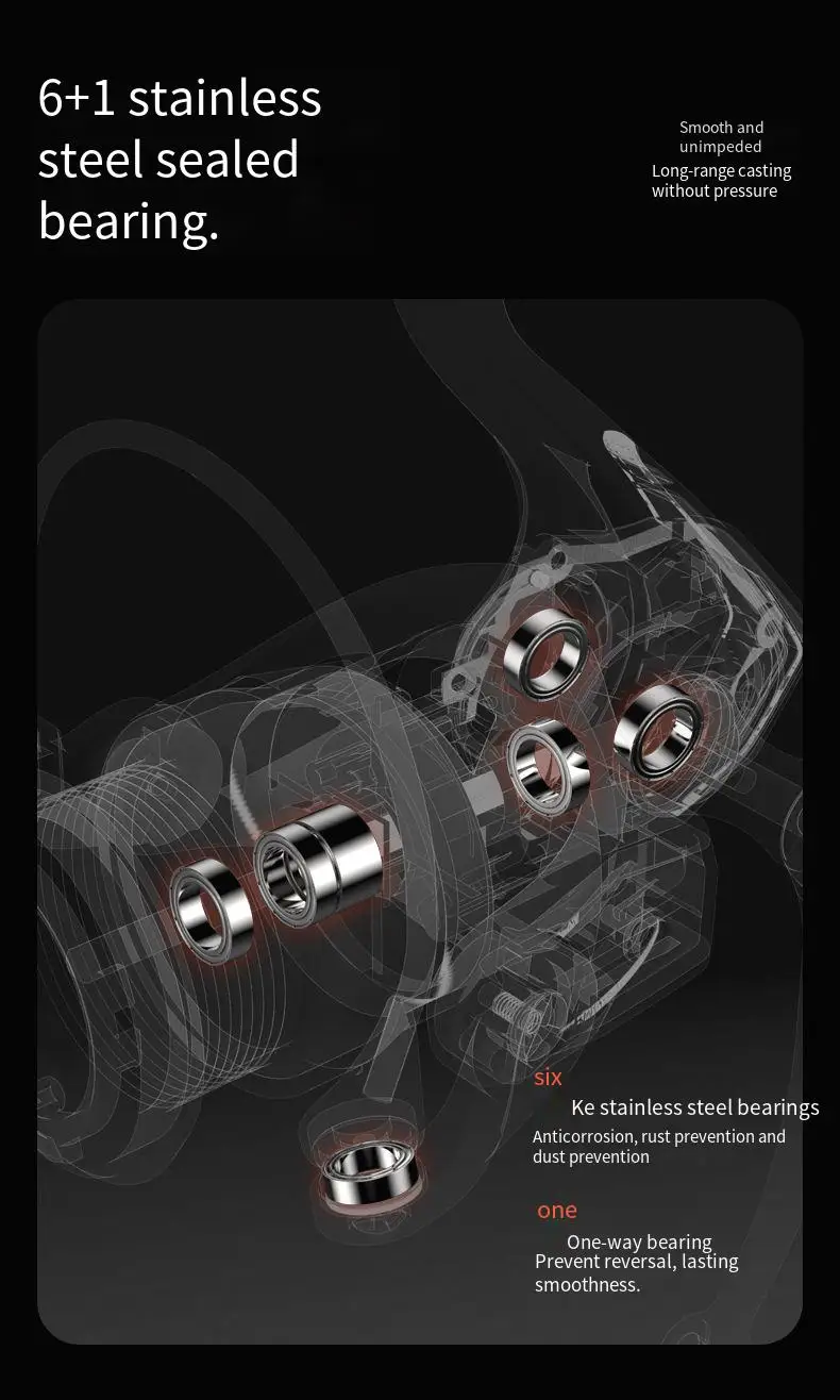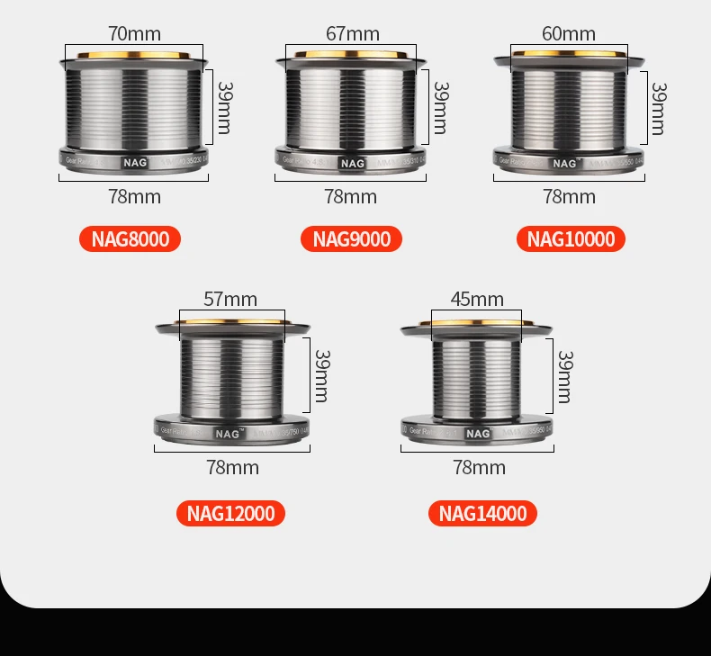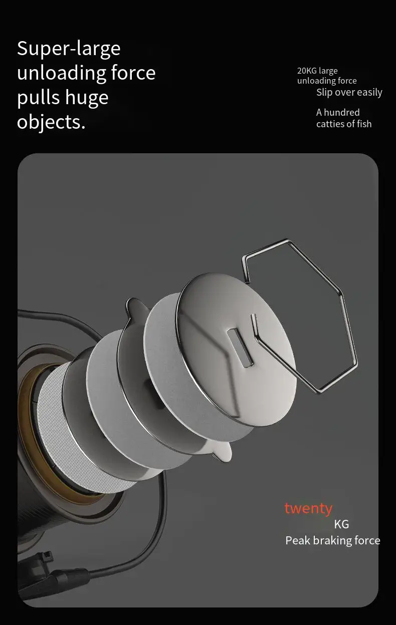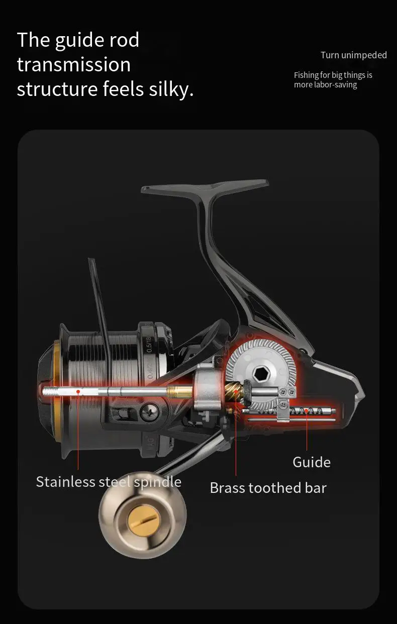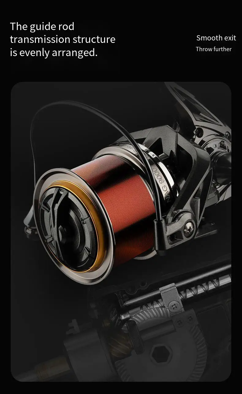 Carrete de pesca grande NAG8000-14000, carrete de cuerpo de Metal, carrete de pesca de agua de mar resistente a la corrosión, 6 + 1Bbs, arrastre máximo de 20KG para peces grandes