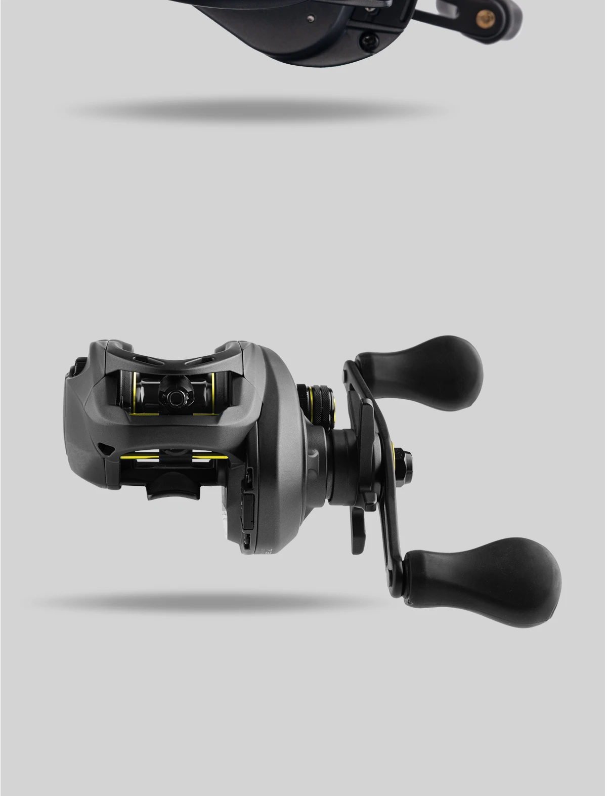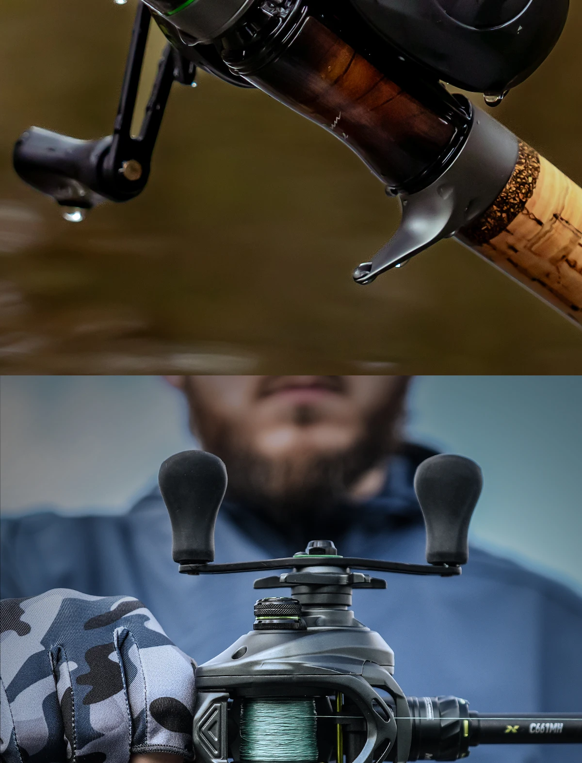 ● Las perillas de goma suave y el diseño de perfil bajo mejoran la comodidad de la experiencia de pesca.