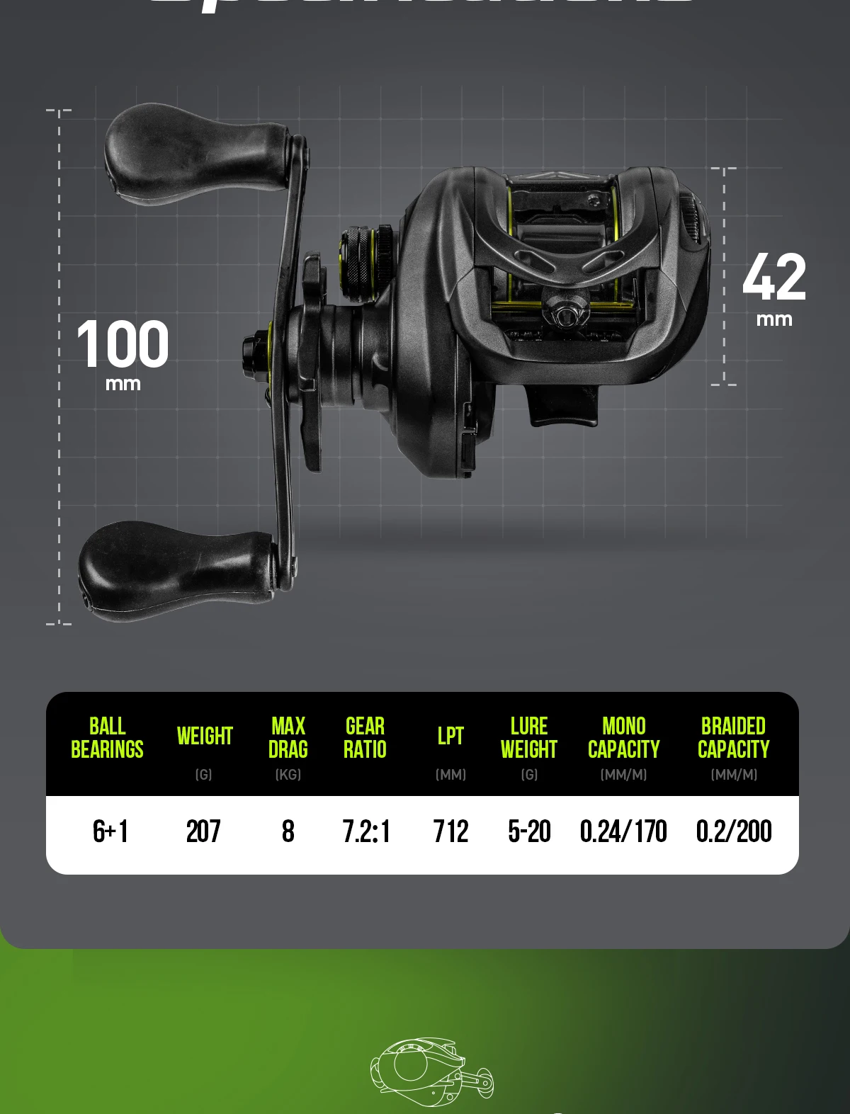 ●Arrastre máximo: 8 KG con arandelas de arrastre de fibra de carbono de 3 discos