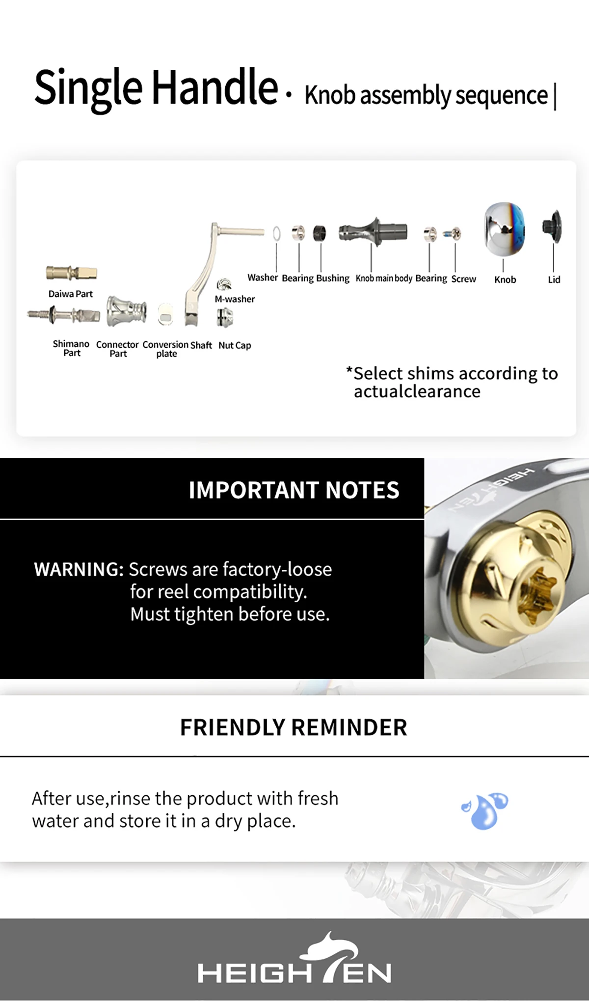 Carrete de pesca HEIGHTEN de un solo mango con distancia de husillo ajustable de 55mm a 60mm y perilla degradada de 30mm apto para DAIWA SHIMANO