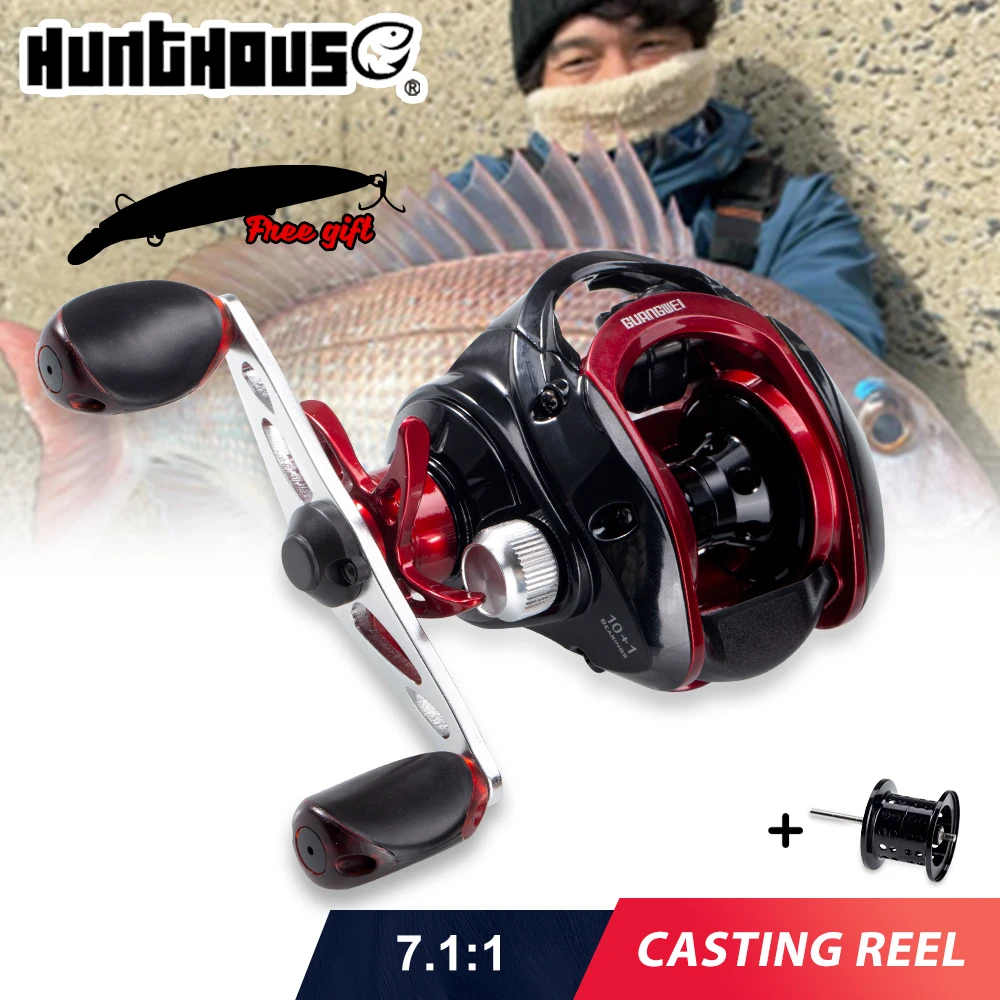 Carrete de pesca de lanzamiento Hunthouse Baitcast 10+1 7,1:1 Arrastre máximo 7kg agua salada 219g relación de engranaje de alta velocidad aparejos de peces de agua dulce