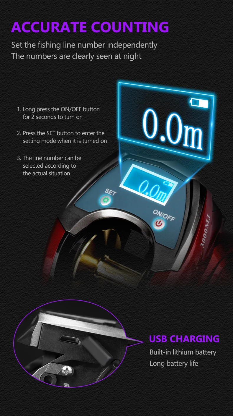 Carrete de pesca izquierdo/derecho de Metal 6 + 1BB con pantalla Digital LED carrete contador de línea de Baitcasting electrónico carrete de fundición 6,4:1