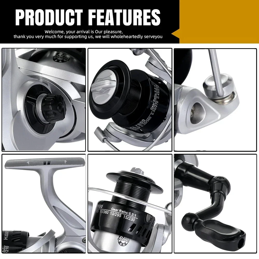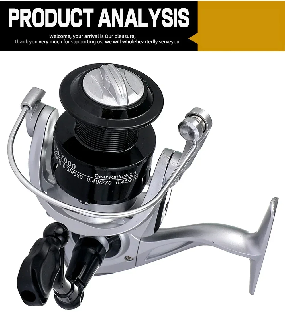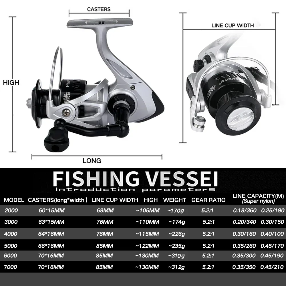Carrete de pesca Jigging de agua salada, alta velocidad 5,2:1, arrastre máximo, 8KG, 2000-7000, rueda de Baitcasting para perca, lubina, aparejos de pescaCaracterísticas☆☆ Hecho de material de nailon de alta resistencia, estructura compacta y copa de hilo hueco, reduce el peso del carrete de pesca y mejora la experiencia de pesca.