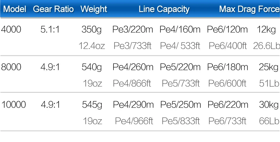 La fuerza de frenado de 35kg es demasiado grande para la misma rueda de pesca en el mar.Después de pescar, ajuste el freno automáticamente según la situación,Y no lo cierre de inmediato.No rompa la varilla debido a demasiada fuerza de frenado.Esta rueda es adecuada para la pesca en el mar, varilla de placa de hierro,Caña de escalada de olas, poste de barco, offshore, offshore,Así como peces grandes de pesca de agua dulce, también puede usar esta rueda.La línea de recolección es más suaveRodamiento de acero inoxidable 12 + 1Cinco pastillas de freno de carbonoDespués del tratamiento térmico, la resistencia del husillo de acero inoxidable mejora considerablemente.Grado anticorrosión de 500 horas de rodamientos de acero inoxidableModelo: 4000,