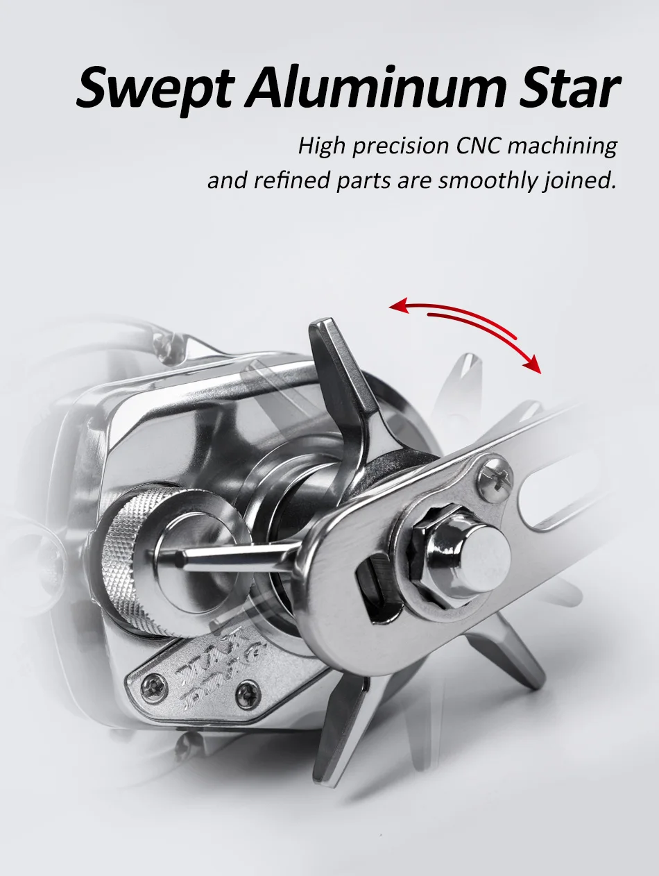 El sistema de fricción de carbono le brinda la máxima potencia de tracción de pesca.Los discos más grandes permiten un desplazamiento del calor más constante, lo que resulta en un sistema de arrastre más eficiente.