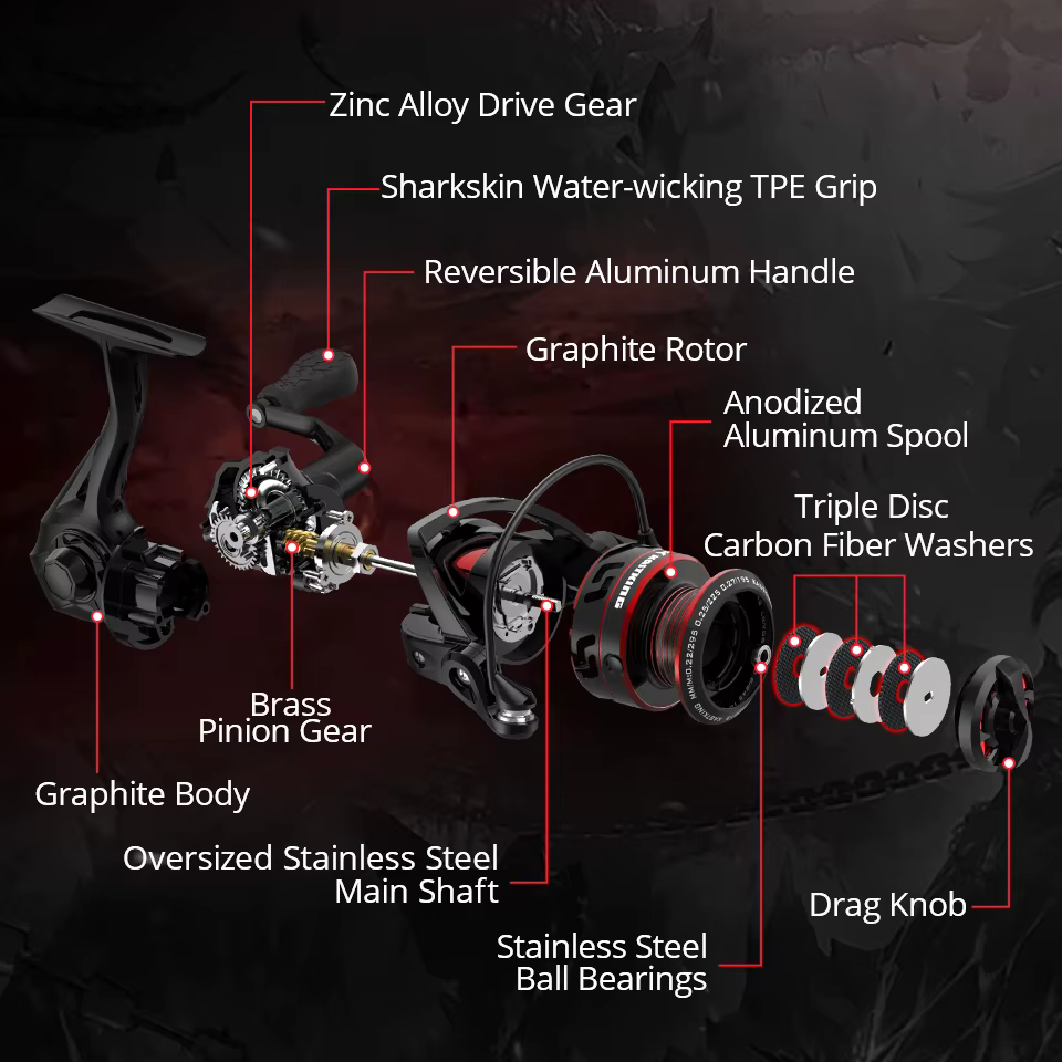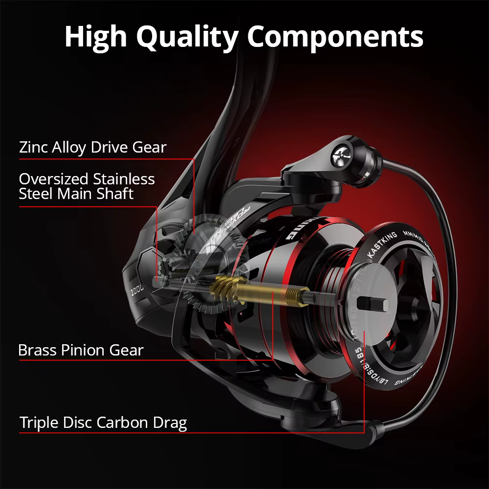 NEGRO: los carretes giratorios KastKing Royale Legend II tienen una apariencia audaz y fresca y excelentes características que agregarán un rendimiento deslumbrante y máximo a su colección de carretes de pesca para la pesca de lubina, la pesca de truchas y peces de agua dulce y salada costera más grandes.