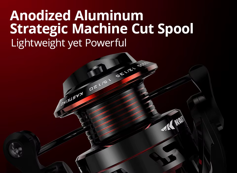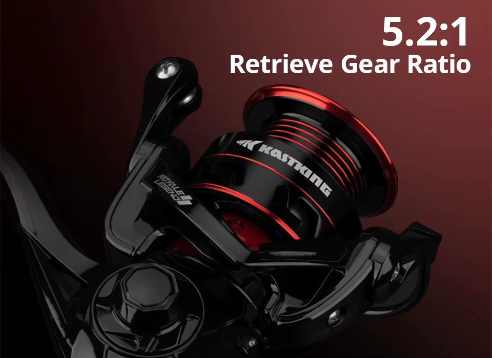TECNOLOGÍA AVANZADA: KastKing utiliza un diseño de rotor de carrete giratorio asimétrico con equilibrio aerodinámico en el carrete Royale Legend II, que gira más fácilmente y tiene una sensación más equilibrada al enrollarse en línea.