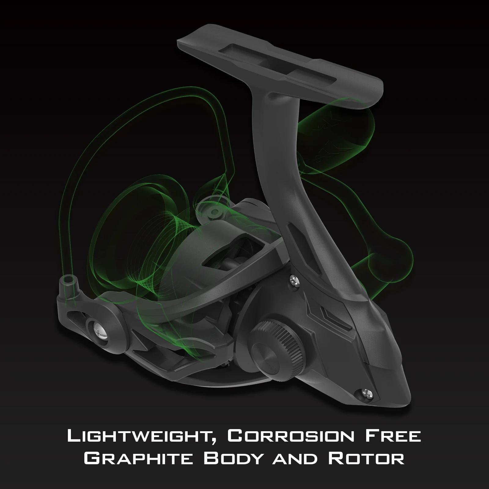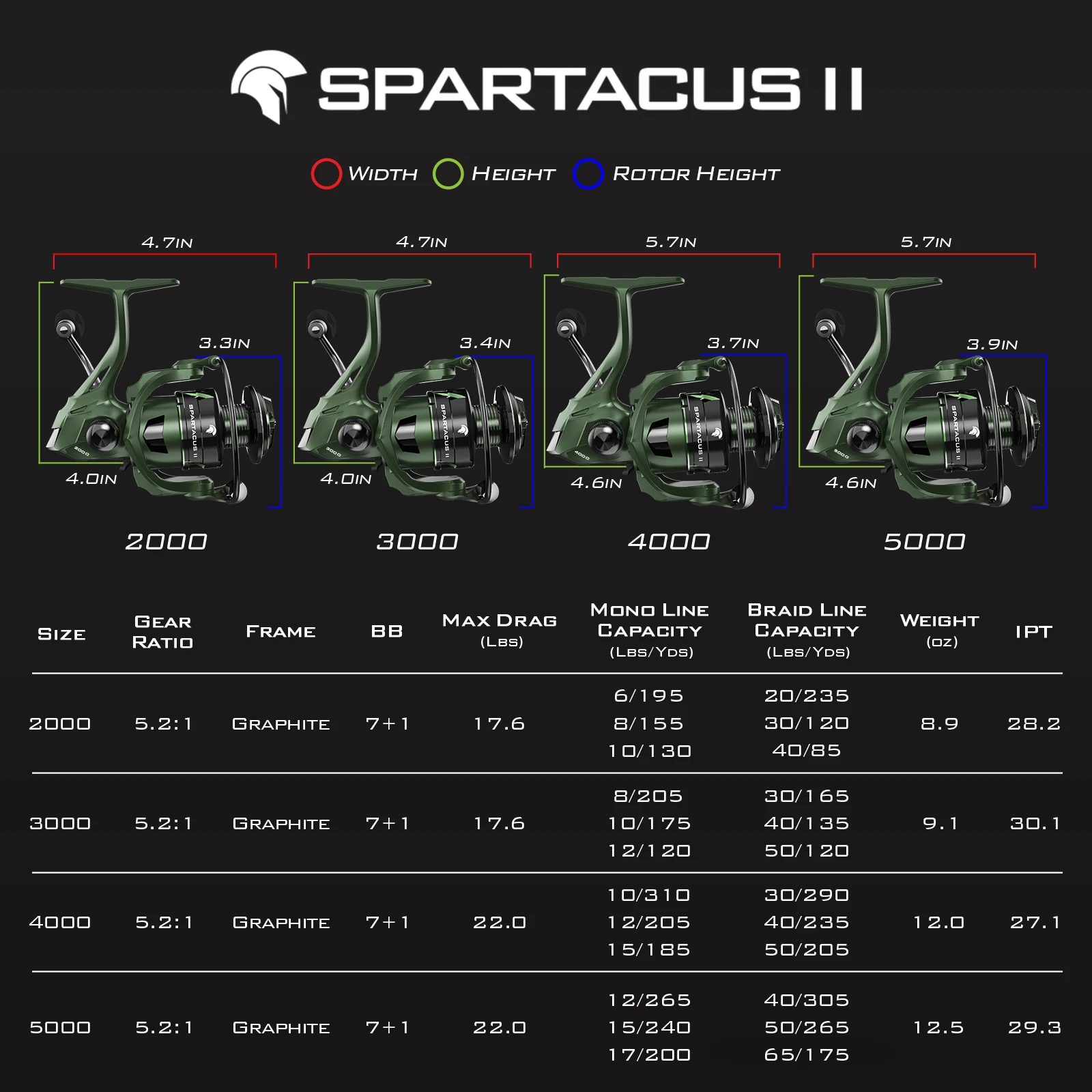Te encantará el arrastre de fibra de carbono ultra suave y confiable de 22 libras del carrete giratorio Spartacus II que te permite usar líneas de pesca livianas, eje principal de acero inoxidable de gran tamaño y engranajes metálicos resistentes para mayor durabilidad.