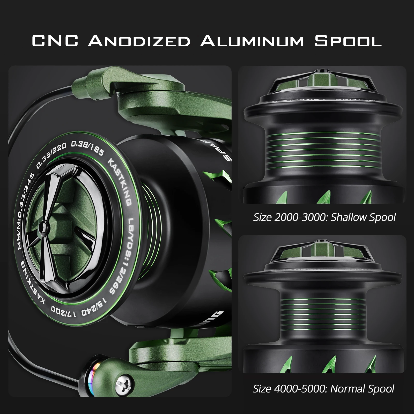 Con sus engranajes de precisión de corte Hamai, IPX5 100% resistente al agua, rodamientos de bolas blindados de acero inoxidable 7+ 1, piñón de latón, rodillo de línea de cerámica, herrajes de acero inoxidable, carrete sellado, mango de aluminio CNC y construido con innovación asequible KastKing, el El carrete giratorio KastKing Spartacus II es un ganador de cualquier cuerpo de agua.