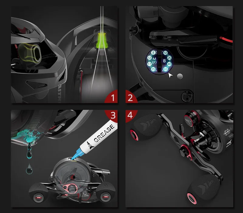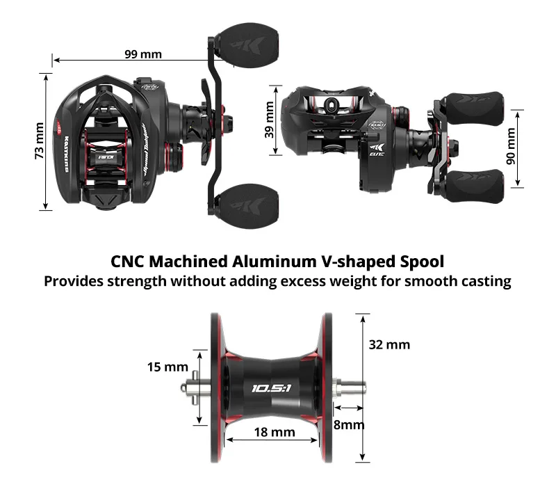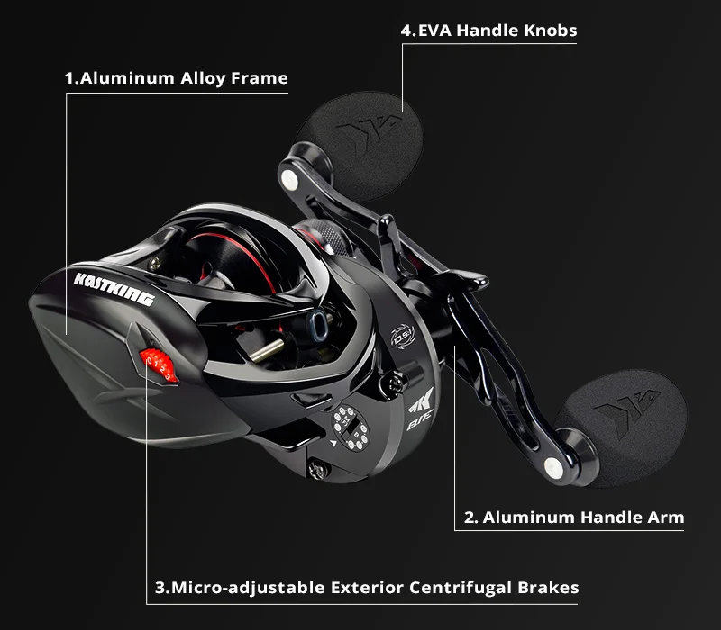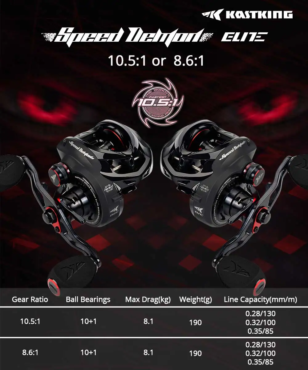 UN GRAN CARRETE DE PESCA COMIENZA CON GRANDES ENGRANAJES -KastKing utilizó el engranaje principal Hamai de aluminio aeroespacial de corte de precisión de 44,3mm para un rendimiento máximo,Velocidad 10,5: 1 y un increíble IPT 42 para una recuperación de línea súper rápida. Esto lo convierte en el carrete de cebo de relación de transmisión más rápida del mercado actual. Si eso es un poco demasiado rápido para ti, Speed Demon Elite también está disponible con una relación de engranaje de 8,5: 1/34 IPT y todas las demás características.