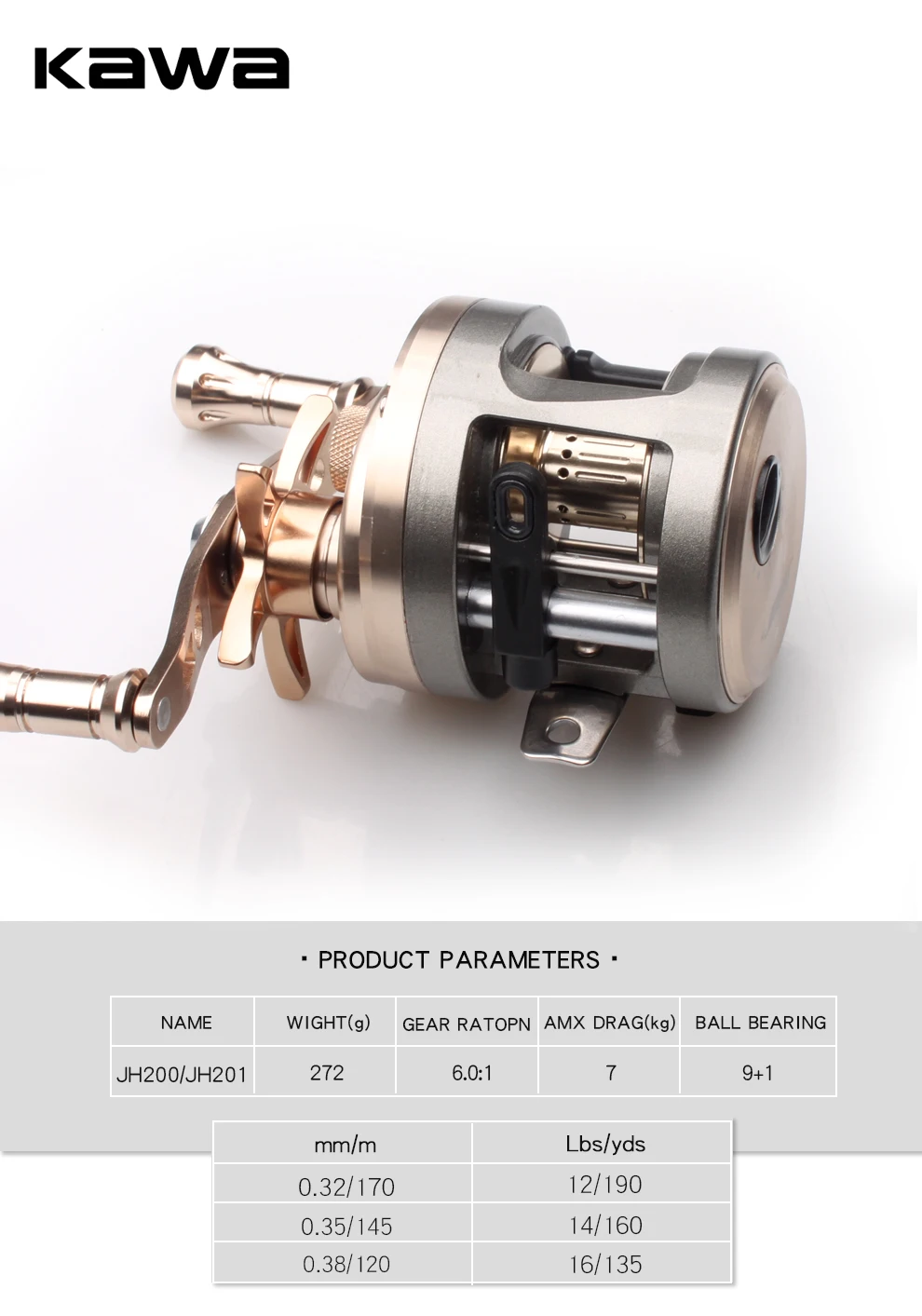 Carrete de pesca KAWA 2018, rueda de tambor fundido, carrete de lanzamiento de cebo, arrastre máximo 7kg, aleación de aluminio con soporte 9 + 1, carrete de pesca marina, envío gratis