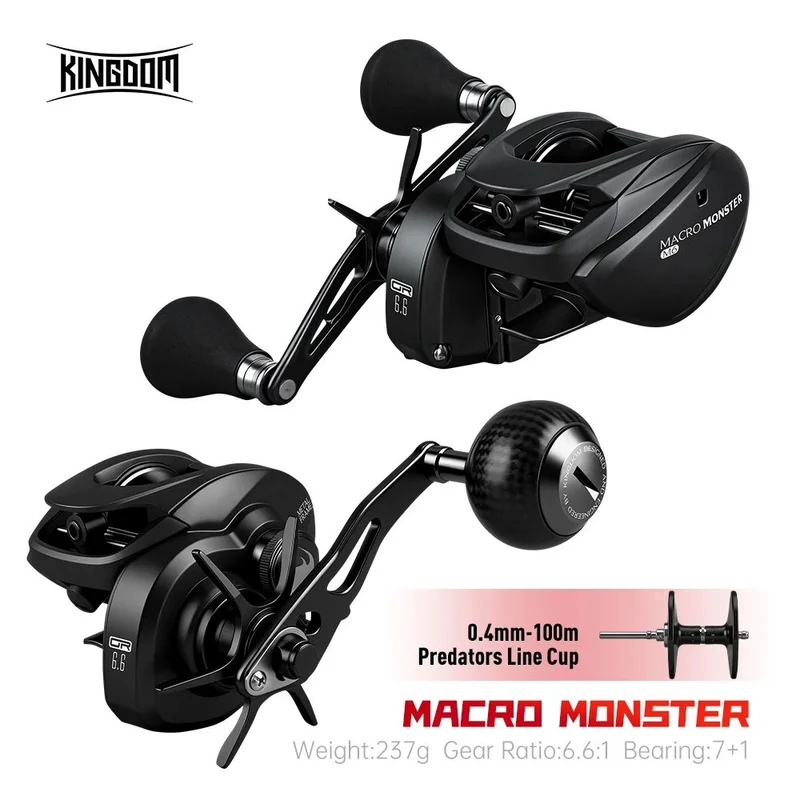 Carrete de pesca Kingdom Macro Monster 237g Full Metal 13kg Fuerza de frenado Relación de engranajes 6,6:1 Carrete de lanzamiento de lanzamiento largo con rodamiento NMB