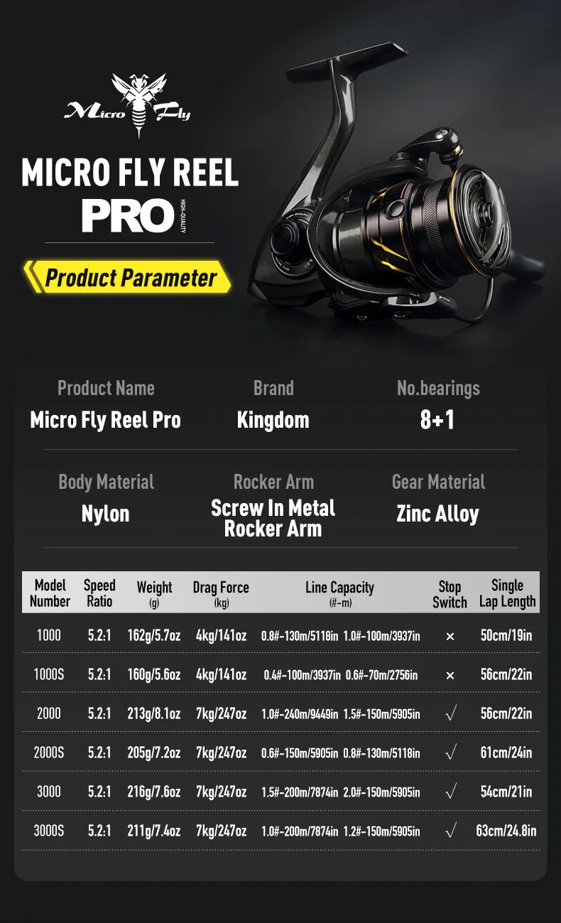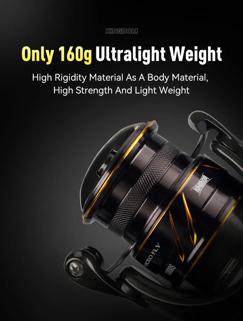 Carrete giratorio de pesca Kingdom Micro Fly Pro, ultraluz 8 + 1 rodamientos sellados, 160g, 8KG, transmisión máxima 5,2:1, carrete de pesca con relación de engranaje