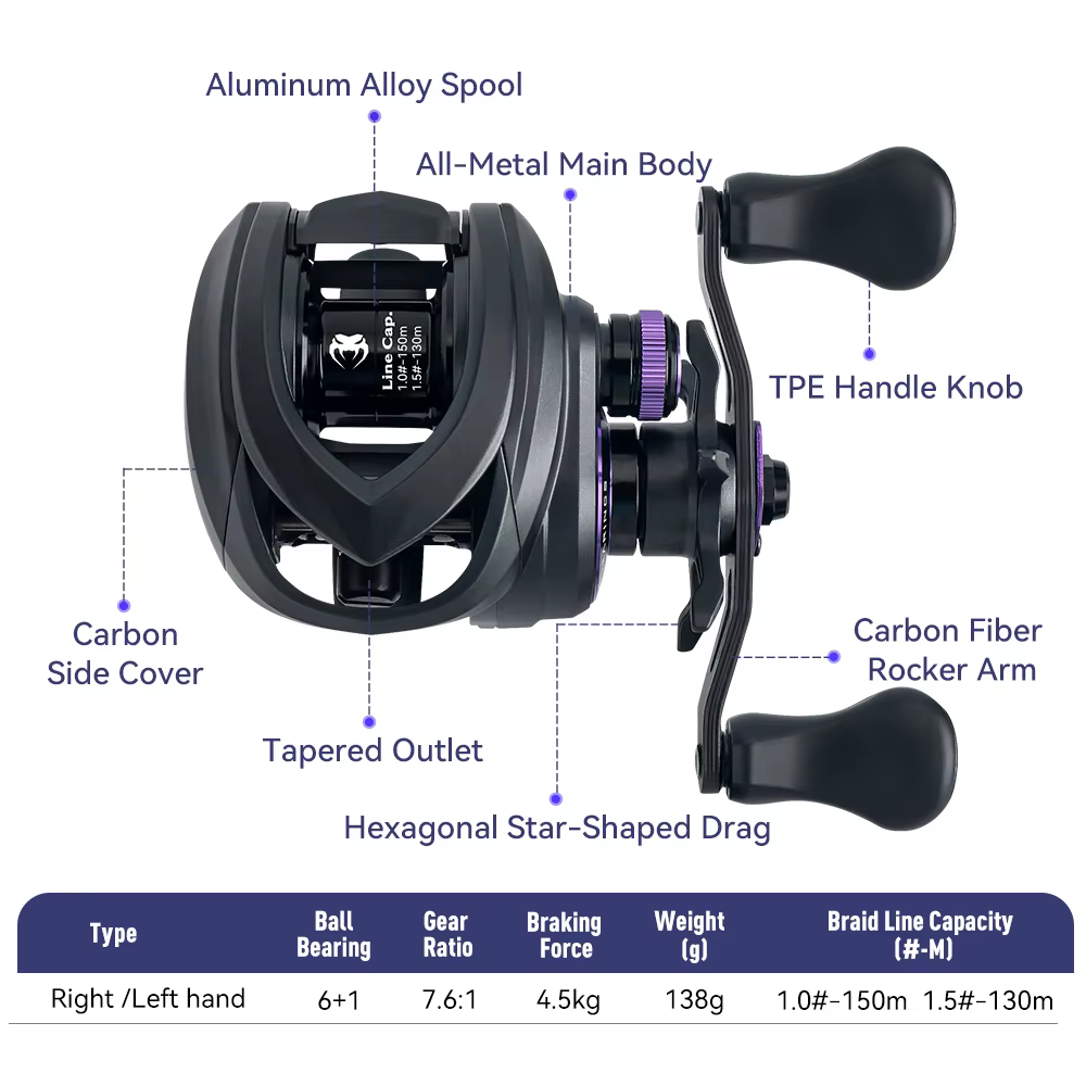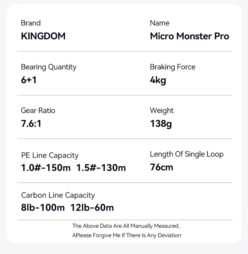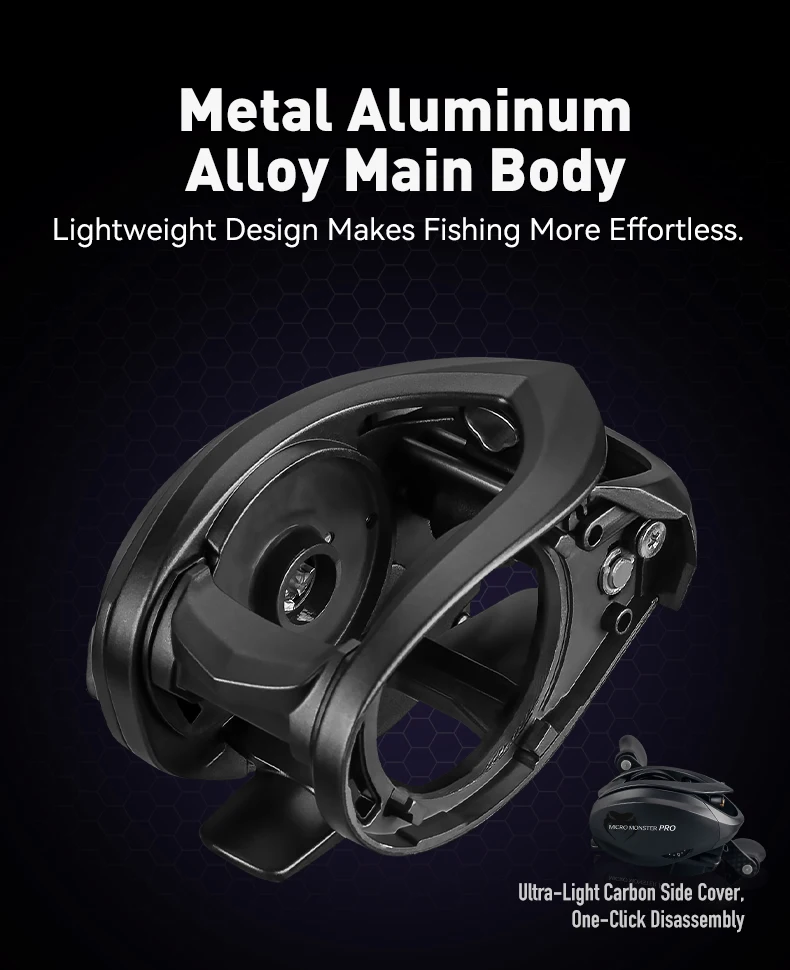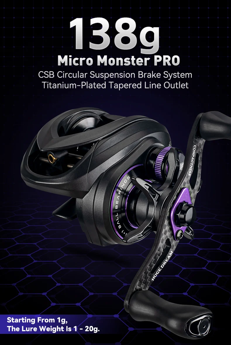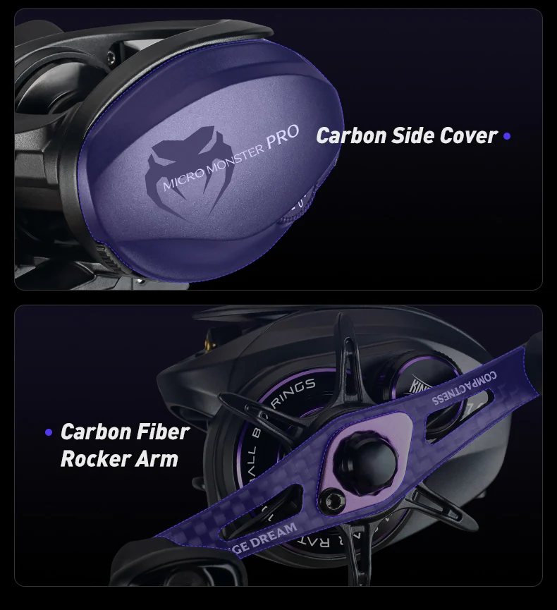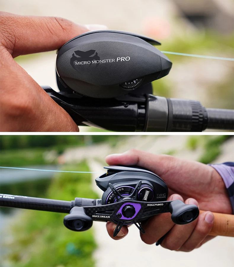 Carrete de pesca KINGDOM Micro Pro Baitcasting 7,6: 1 relación de engranaje 4,6 kg arrastre máximo 138 g peso carrete de pesca de Material de carbono ultraligero