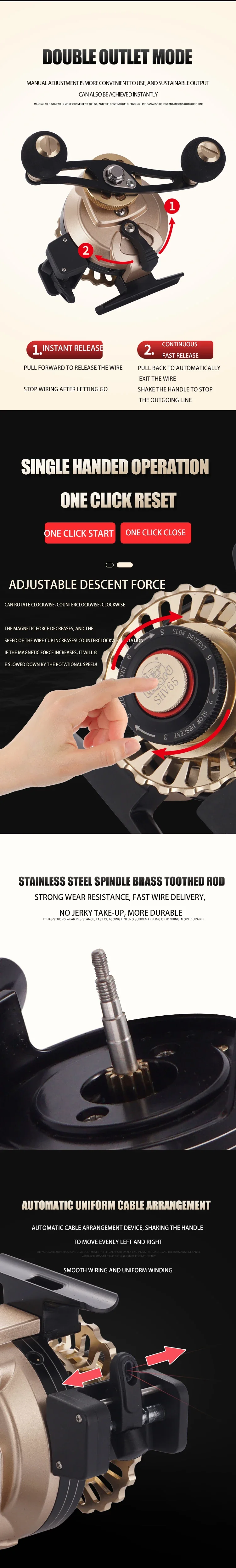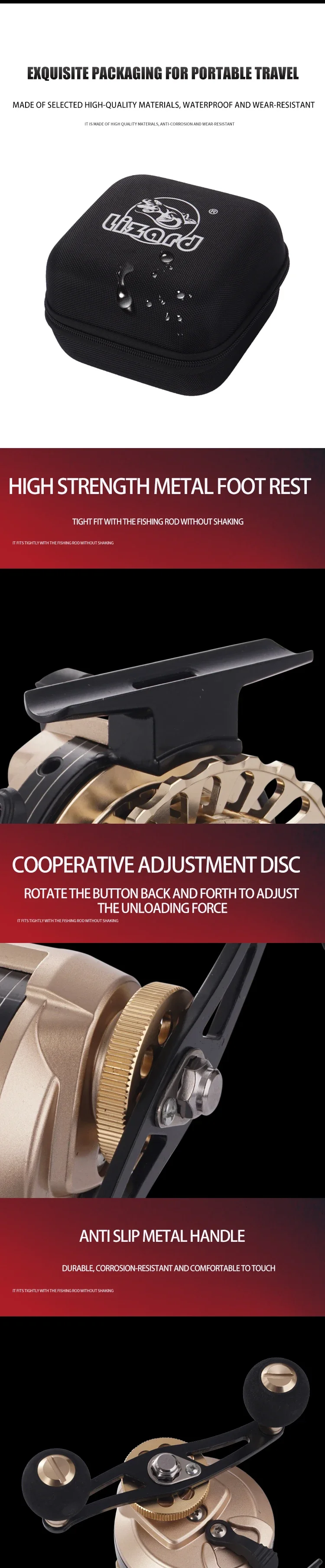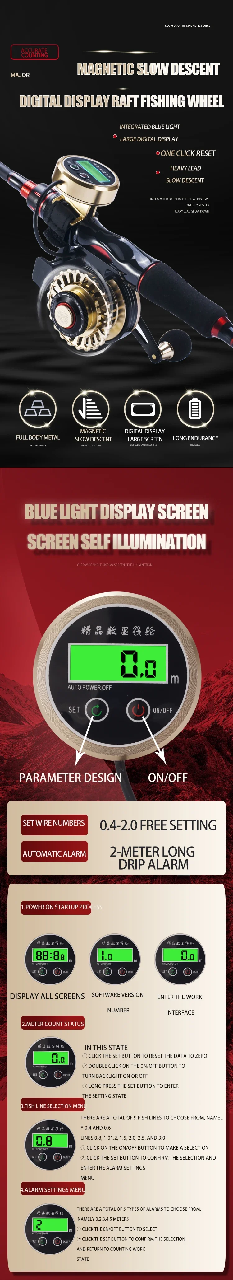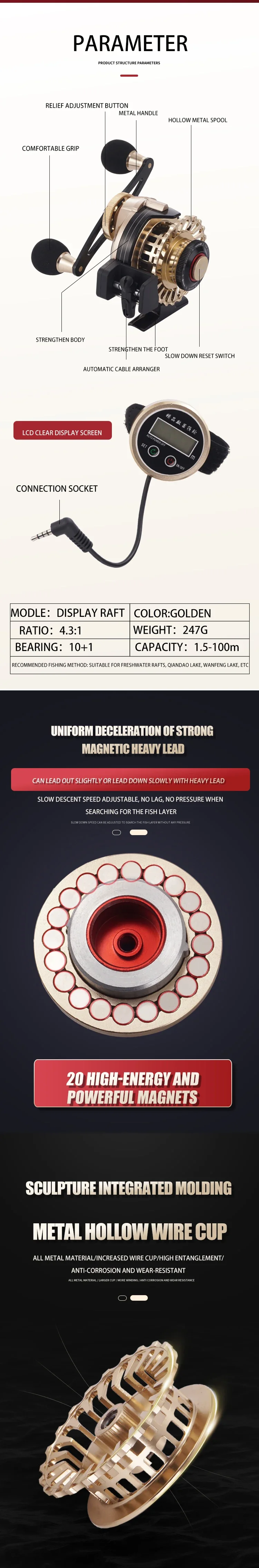 Carrete de pesca de lagarto con cuerpo totalmente metálico y mango de metal, carrete de pesca de balsa con pantalla digital, arrastre máximo de 5kg con rodamiento 10 + 1