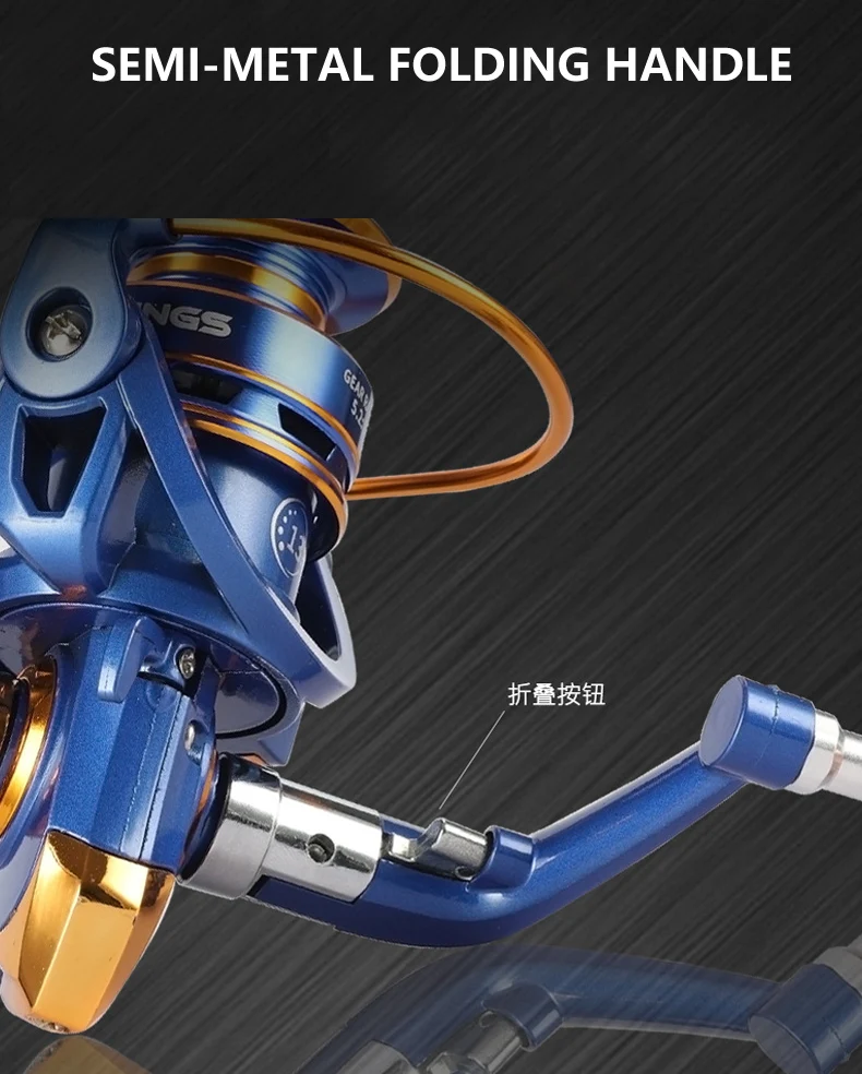 Carrete de pesca de lubina de alta velocidad, rueda giratoria ligera de Metal, 12 + 1BB, agarre de madera, serie 5,2: 1, 1000, 2000, 3000