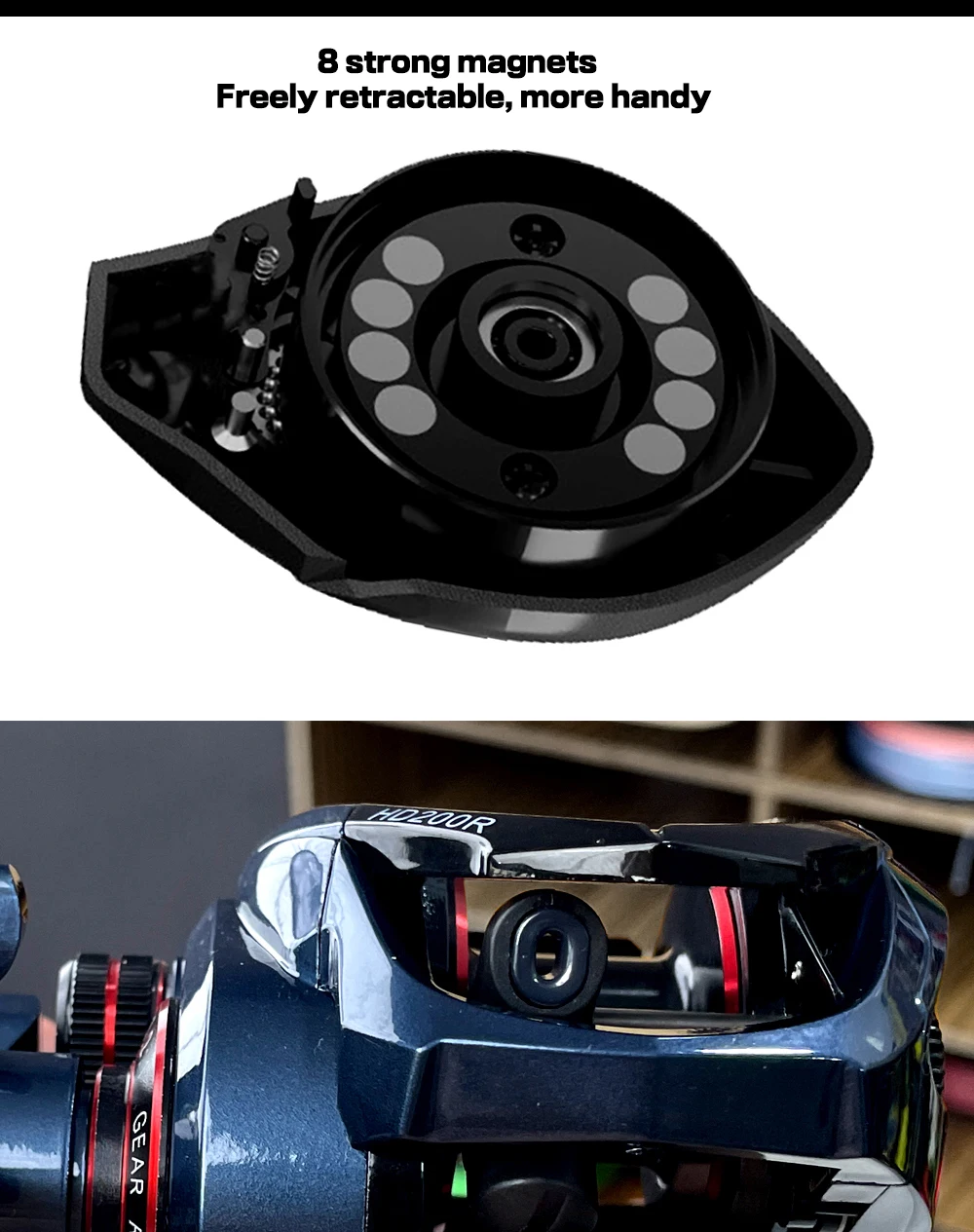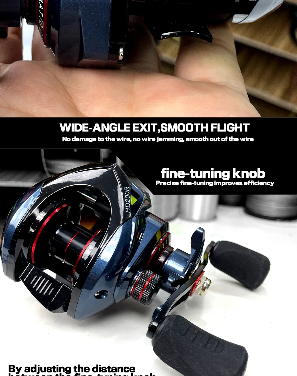 Equipped with universal long-range magnetic brakes, it features 8 strong magnetic stones for precise and smooth casting. It also comes with a wide-angle line outlet for smooth, efficient line flow that won't damage or snag your fishing line. Adjusting the line is easy with the finely tuned micro-adjustment knob, ensuring that you achieve maximum efficiency with each and every cast.