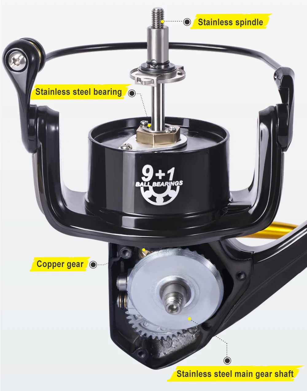 Esperaba más en los materiales que aunque no se ven malos parecen de un metal normal. El movimiento de los rodamientos deja al debe. Hasta un shimano sienna es mejor en eso. Habrá que probar en una pelea para ver si es efectivo.