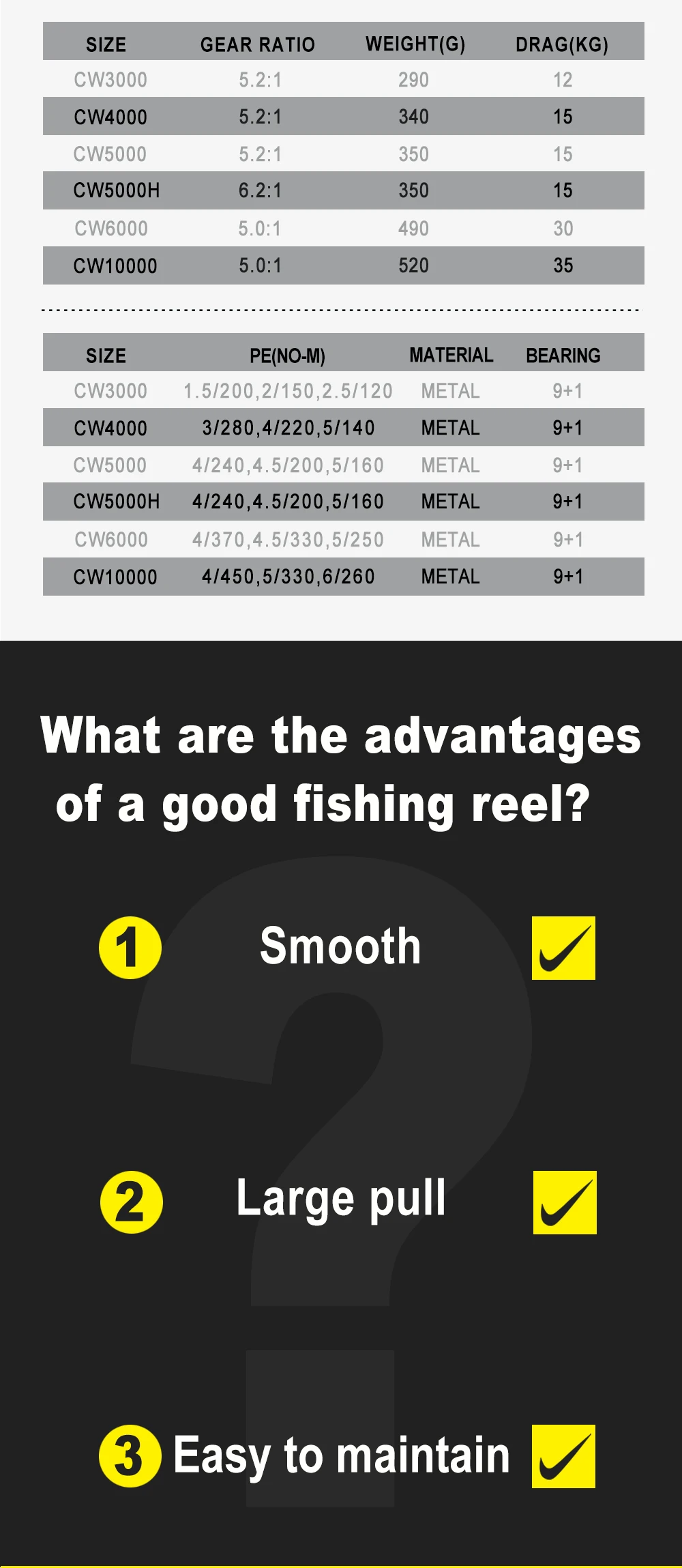 Carrete de pesca Spinning/Jigging Potencia de arrastre de 35 kg.