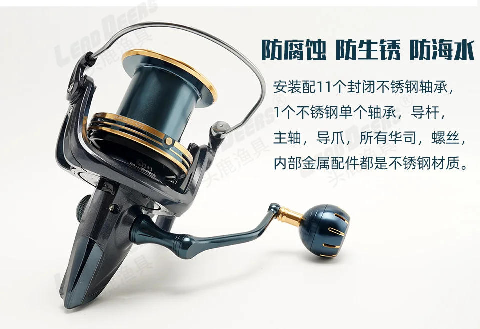Carrete de pesca de mar LD 12BB 4,8:1 relación de engranaje ligero arrastre máximo 25KG carrete giratorio anticorrosión descenso lento PE10#-360 m