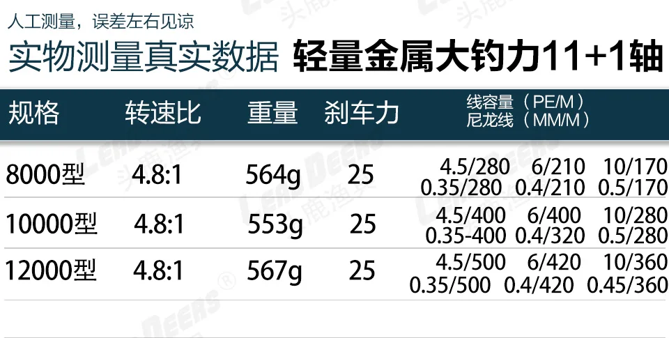 LD 10000| Relación de engranajes: 4,8:1| Peso: 553 g| Rodamientos: 11+1BB| Arrastre máximo: 25 KG| Capacidad de línea: 0,35/400-0.4/320 0,5/280