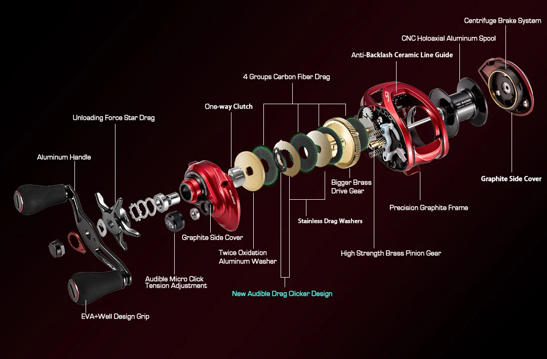 Todos los carretes de baitcasting con engranajes y piezas de metal pueden ser un poco ruidosos.Voltee el carrete y ponga una gota de aceite en el engranaje helicoidal y asegúrese de que el carrete y sus piezas estén limpios y lubricados.