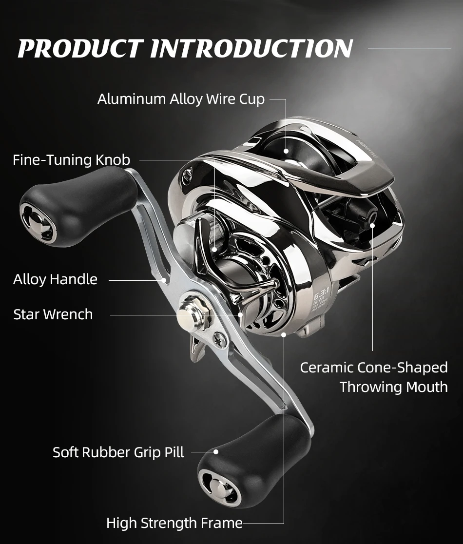 •El diseño de la rueda giratoria de precarga garantiza un lanzamiento suave y fácil, lo que la hace perfecta tanto para principiantes como para pescadores experimentados.