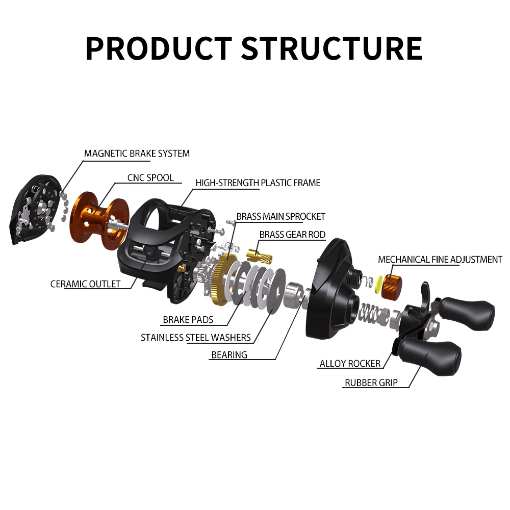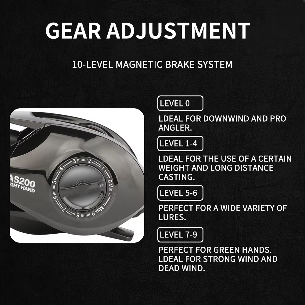 Carrete de pesca de Metal 6,3: 1, Ratio de engranaje, rueda de pesca Baitcasting, carrete de pesca Baitcasting, arrastre máximo de 8kg, carrete de pesca de agua salada de alta velocidad