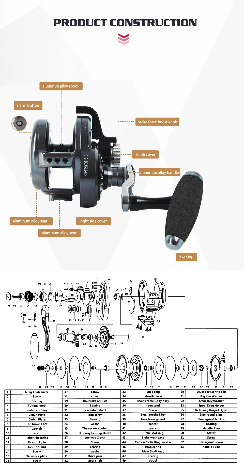 * El disco/engranaje/husillo de aparejos de pesca se utilizan mecanizado de precisión de acero inoxidable. Otros repuestos también son de acero inoxidable, duraderos y no fáciles de usar.