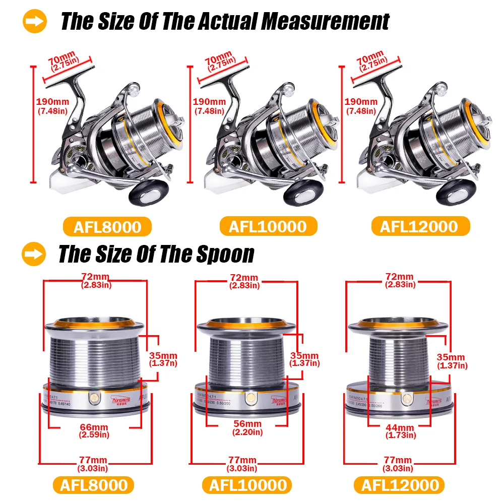 AFL12000 | Weight: 770g | Ratio: 4.7:1 | Max Drag: 25kg | Line Capacity: 0.40mm/320m