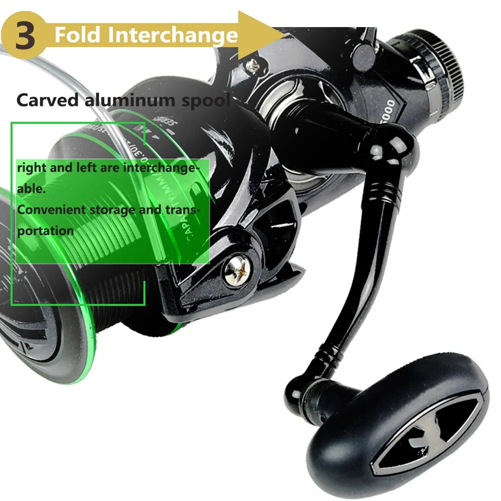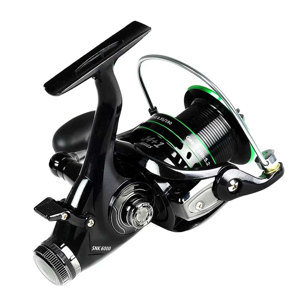 Utiliza carrete de aleación de aluminio tallado fino de alta dureza, resistencia y material ligero. Una línea de salida suave hace que el tiro sea más largo.