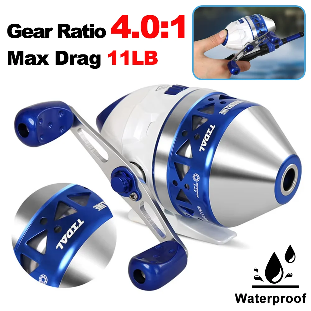 Carrete de pesca de metal con relación de engranaje 4,0: 1 con asas intercambiables, carrete giratorio cerrado resistente al agua con rueda de pescado para exteriores