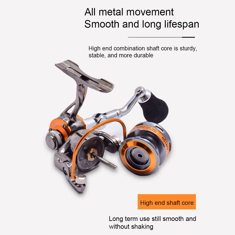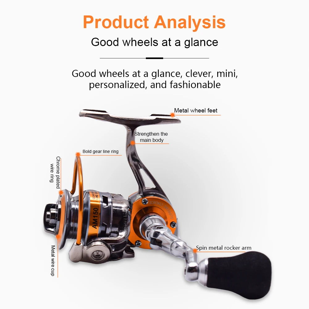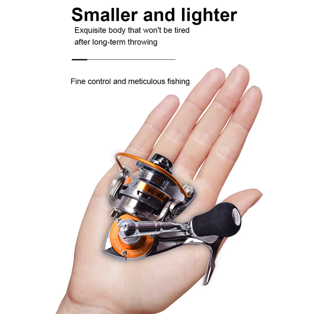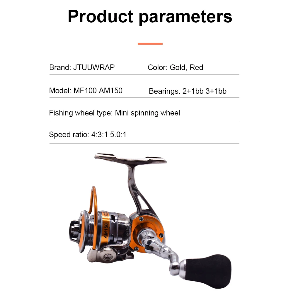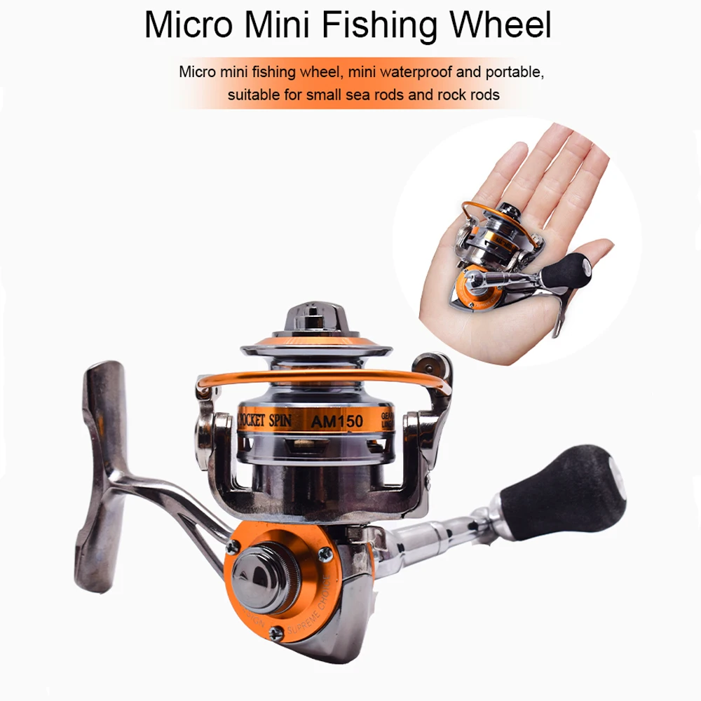 Carrete de pesca de metal, rueda giratoria de pesca, relación de transmisión 5,0: 1, mini carrete giratorio portátil y ligero, 1 unidad