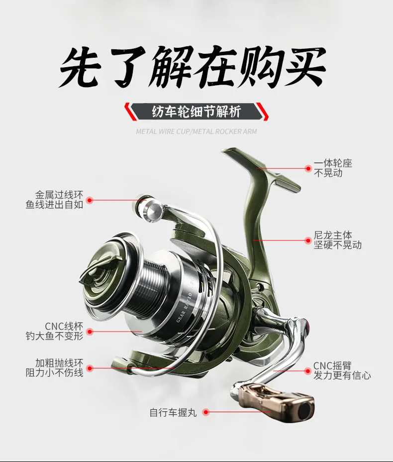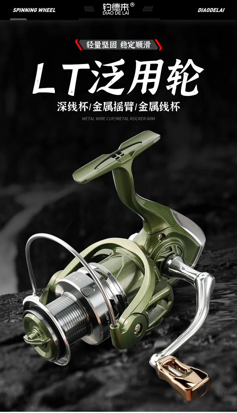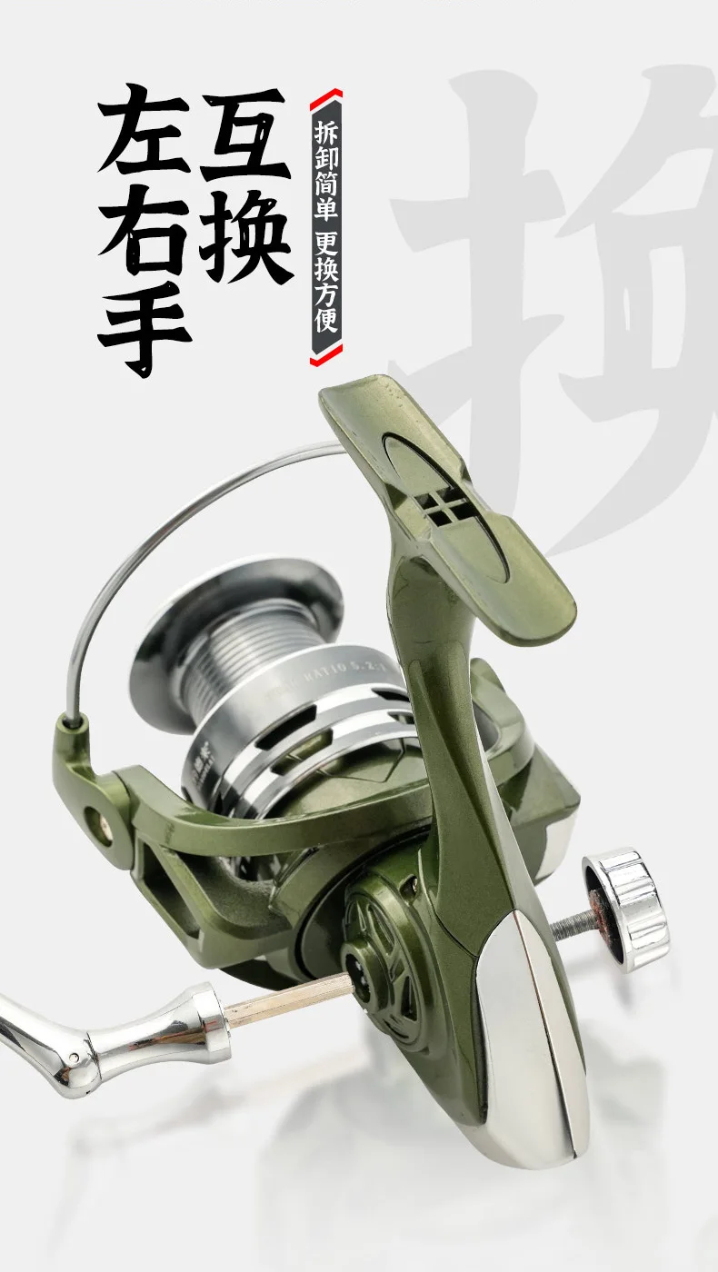 Carrete de pesca de Metal Universal, rueda giratoria con relación de engranaje 5,2: 1, arrastre máximo de 8kg, brazo basculante CNC, copa de línea profunda, carrete de poste de mar