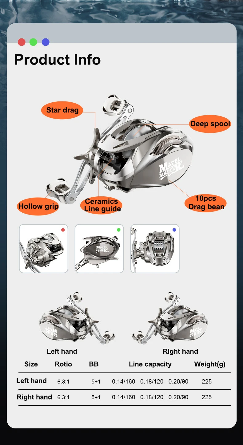 Carrete de pesca de Metal VX ligero 225g exportación de cerámica 5 + 1 rodamiento de bolas de acero 6,3: 1 carrete de fundición de cebo de alta velocidad señuelo de agua salada