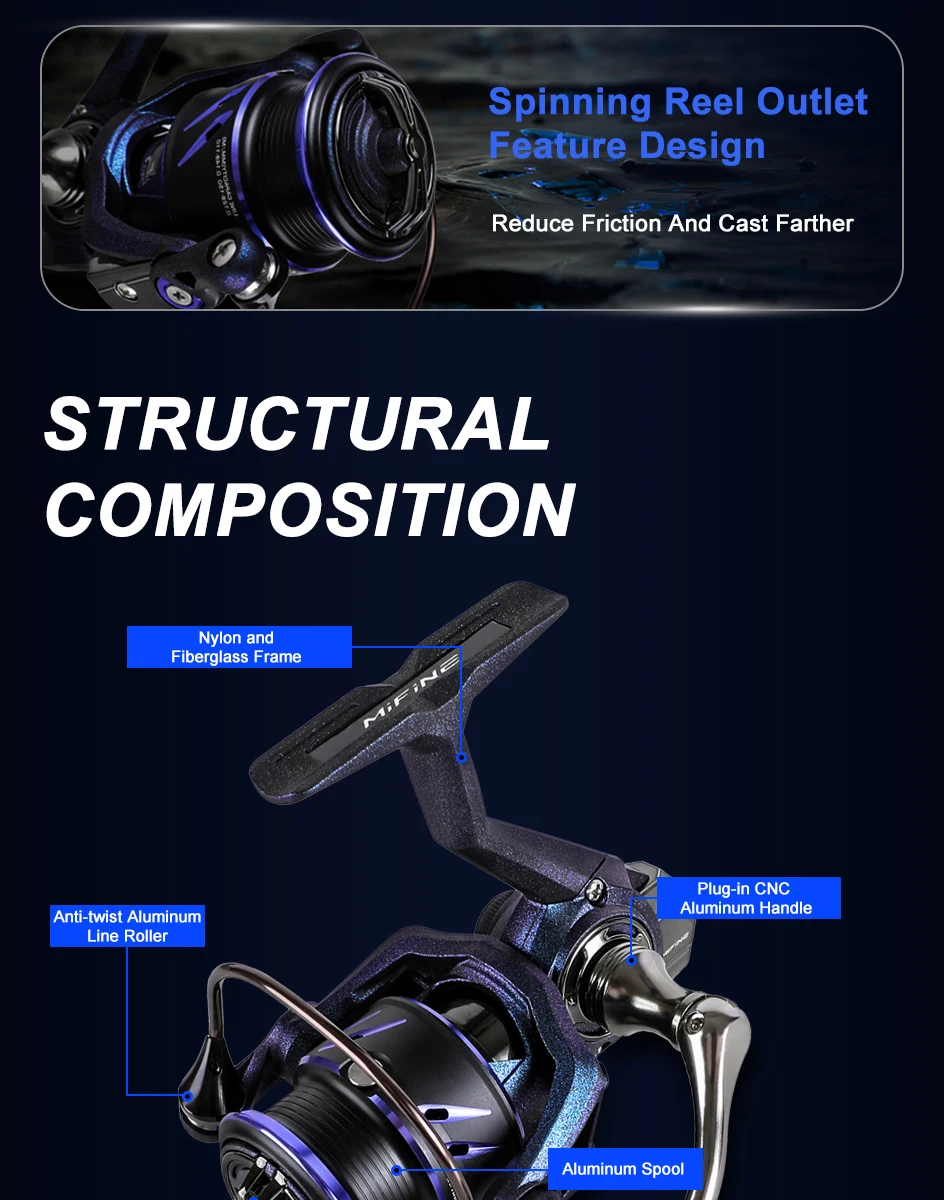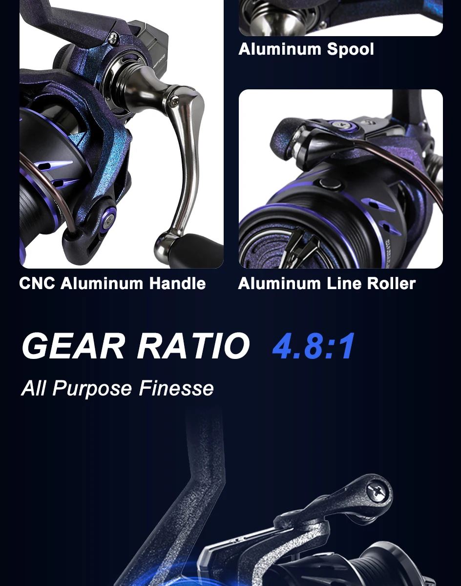 Carrete de pesca Mifine ILLUSION carretes giratorios ligeros 800 4,8:1 4kg Grag 5 + 1 rodamientos de bolas pesca de trucha agua salada agua dulce
