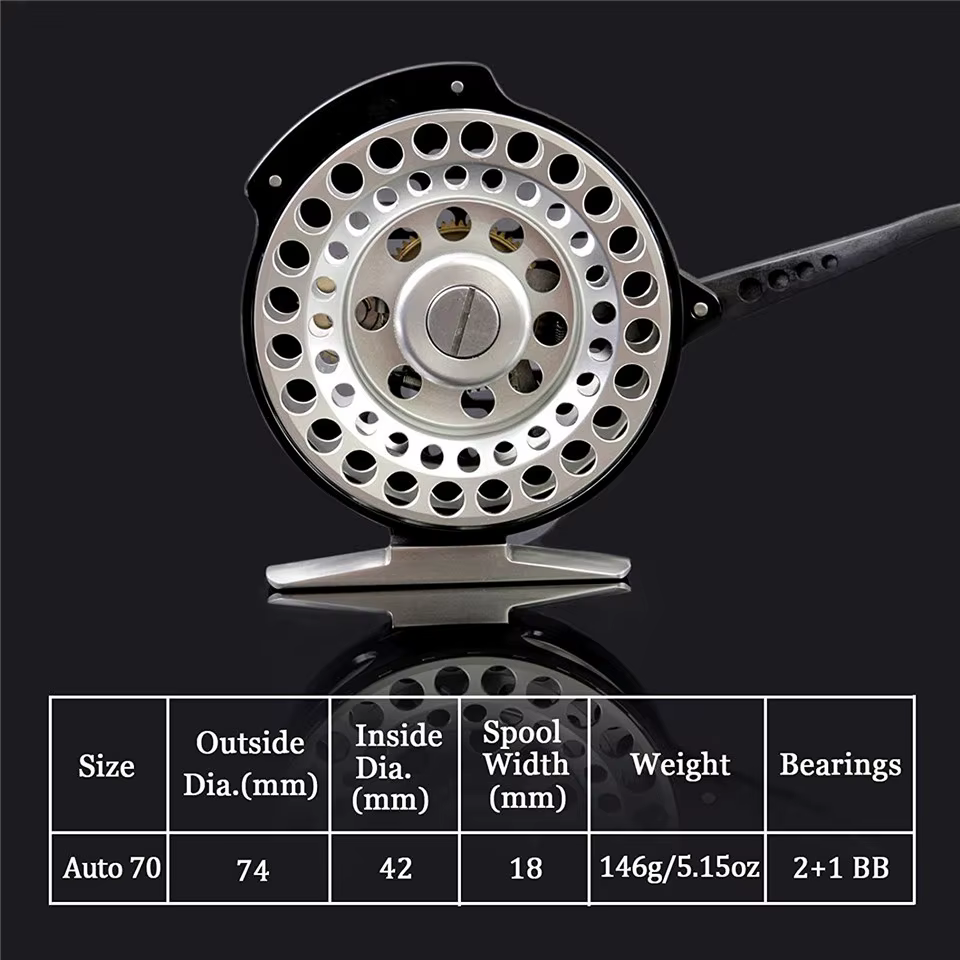 Diseño de eje grande y capacidad de línea: 74 mm de diámetro exterior con un diseño de eje grande para limitar la memoria de la línea.Suficiente para líneas de mosca de 2wt a 4wt con respaldo de 20 metros y 20 libras.