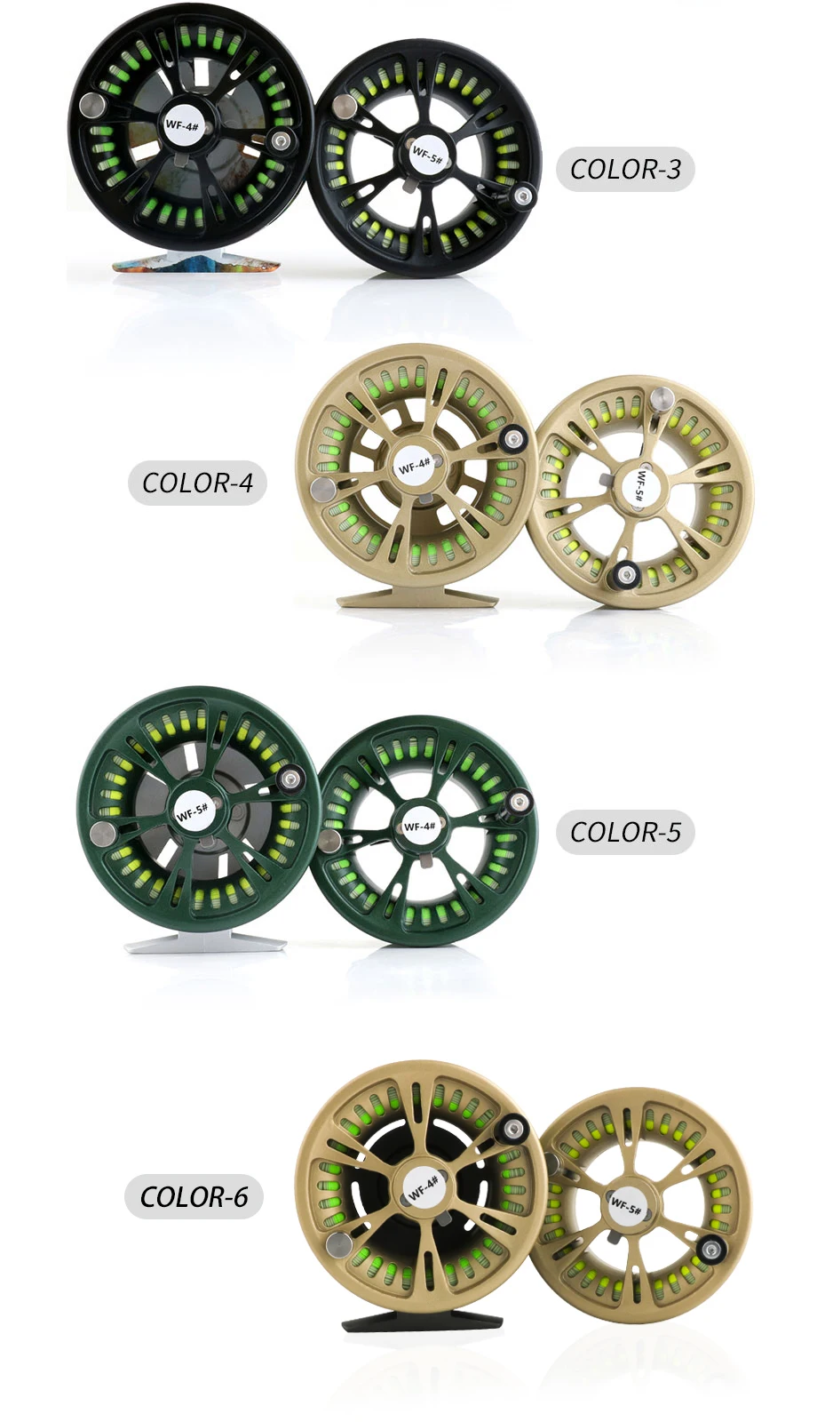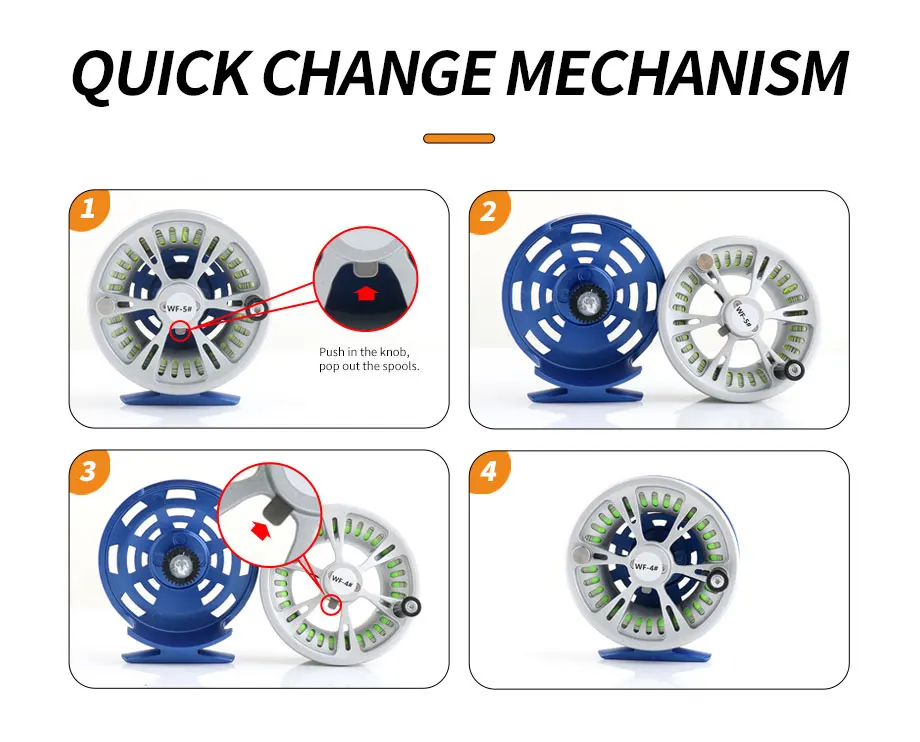 Carrete de pesca con mosca mecanizado CNCCarrete de pesca con mosca mecanizado CNC carrete de pesca con mosca de doble línea entrelazada de alta calidadCaracterística del producto1. Carrete de pesca con mosca CNC de alta calidad, equipado con dos números de línea diferentes de ruedas de pesca voladoras.2.Cambiar la dirección de instalación del carrete de pesca puede lograr el intercambio de la mano izquierda y derecha.No se necesita herramientas, retire el carrete presionando la tecla de liberación rápida, retire el resorte de posicionamiento y el rodamiento unidireccional, invierta el rodamiento de bolas unidireccional, vuelva a instalar el resorte de posicionamiento y listo.3. Mecanismo de cambio rápido, presione la perilla y saque los carretes.4. El hilo de pescar suave garantiza un lanzamiento lejano, silencioso y sin costuras al entrar al agua.5. Se pueden elegir cinco colores.Línea de pescaCarretilla de mosca Precargada con línea de mosca de diferentes tamaños,Línea de respaldo con línea de mosca WF4F, 66 yardas y 20 LB.Línea de respaldo con línea de mosca WF5F, 66 yardas 20 LB.Notas