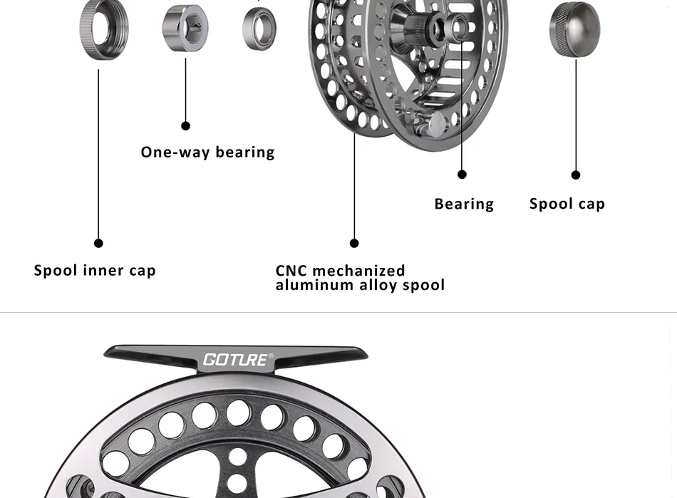 Carrete de pesca con mosca Goture 3/4 5/6 7/8 9/10 WT CNC mecanizado Metal aluminio profesional calidad carrete de pesca cambiado a mano