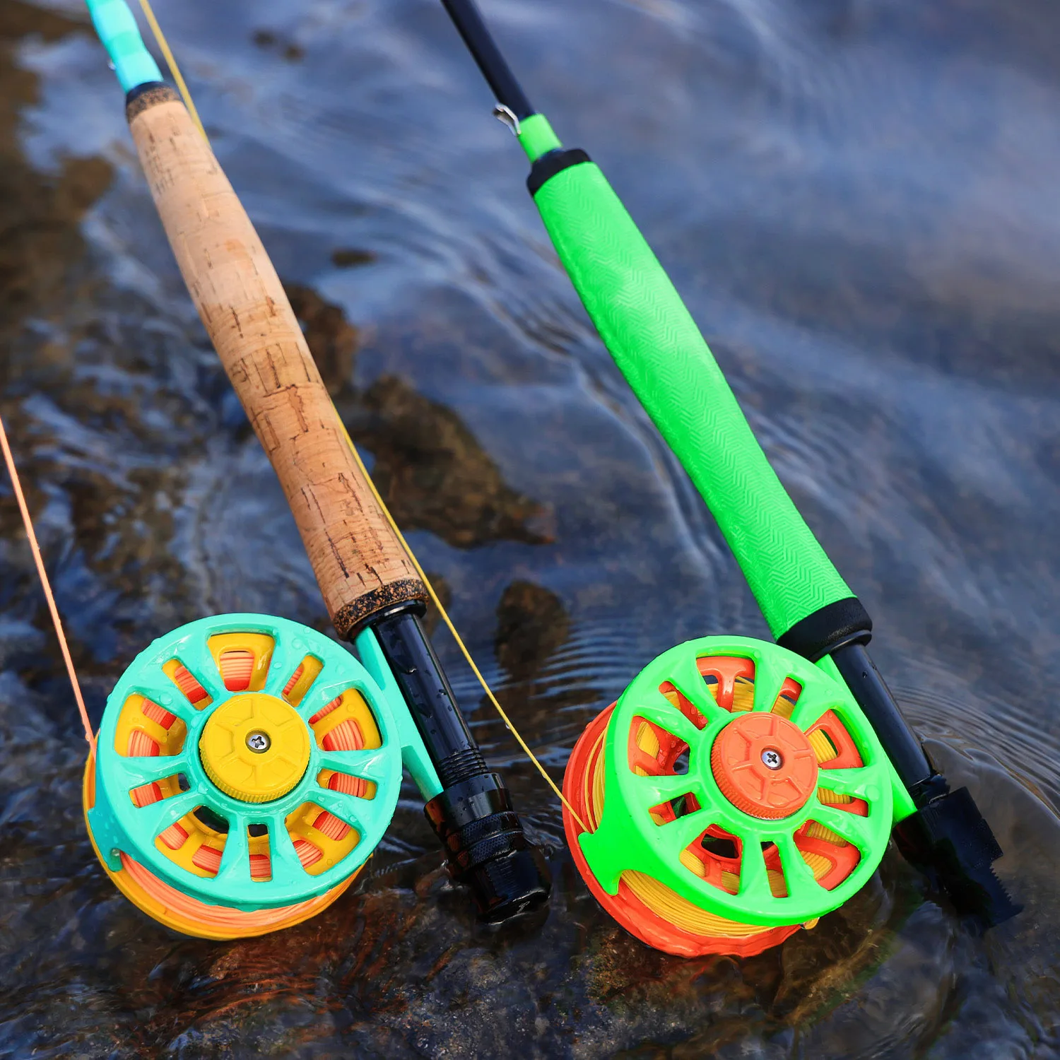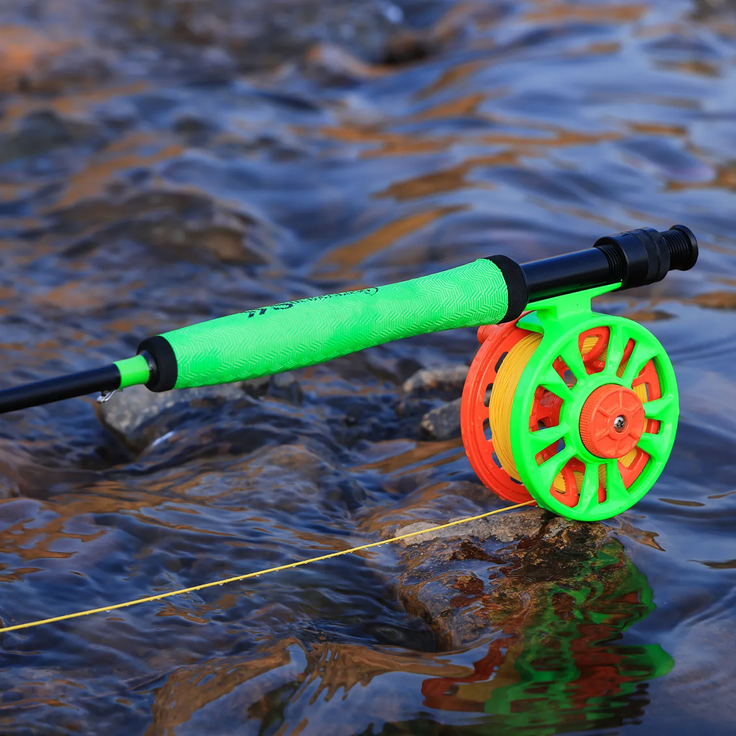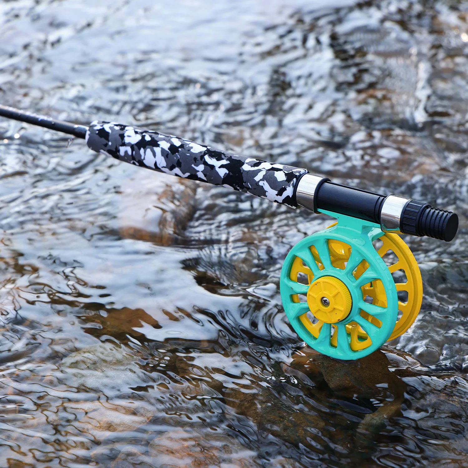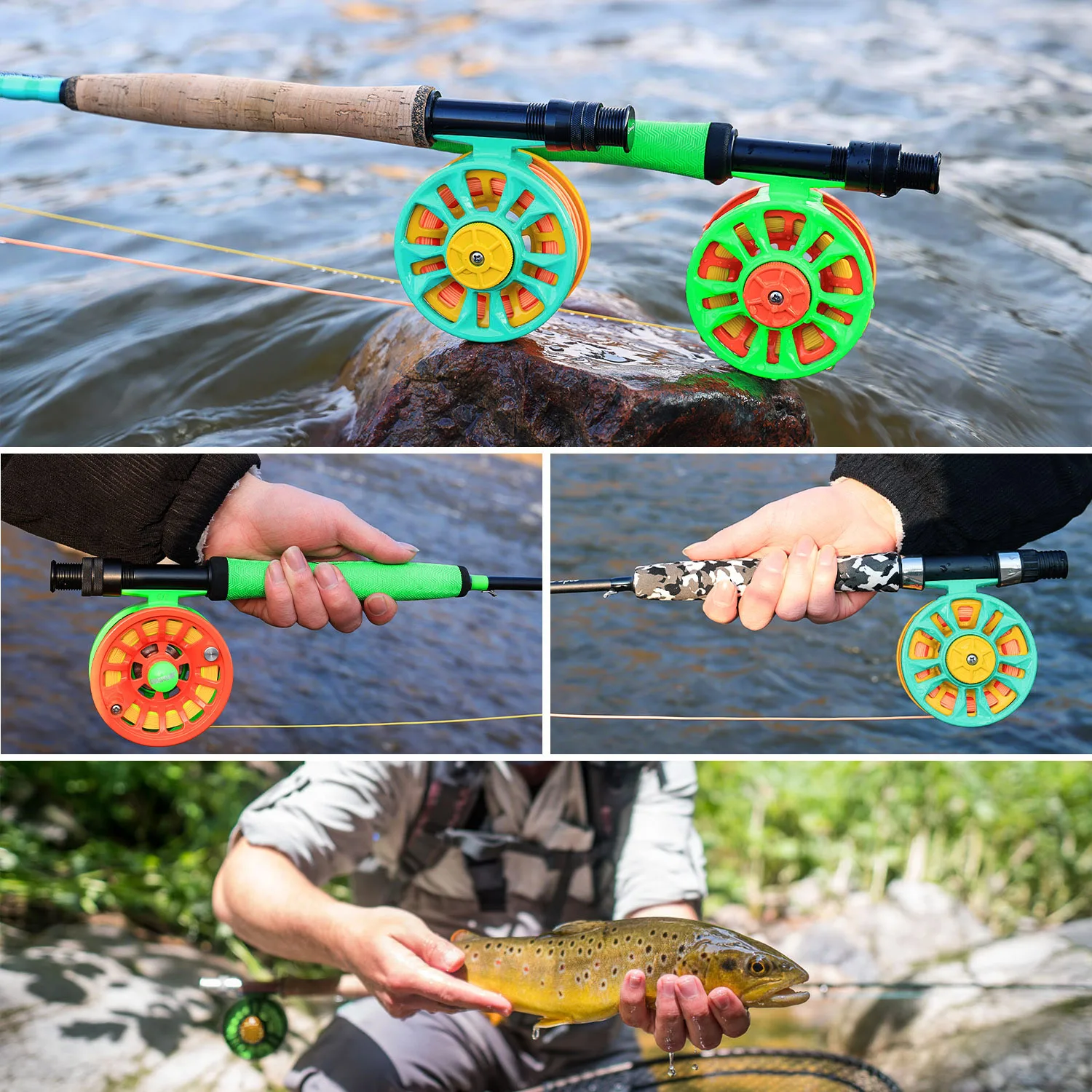 1 carrete de pesca con mosca.