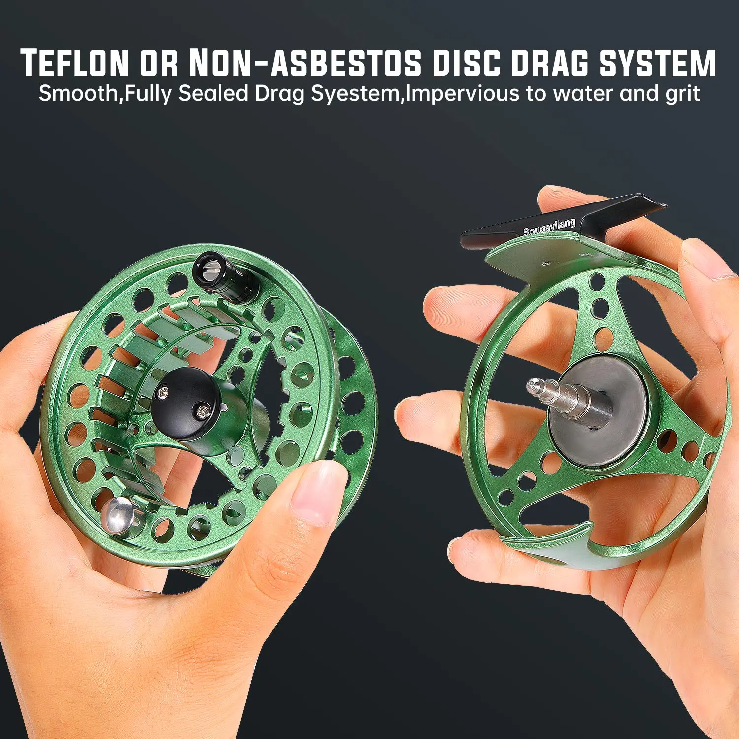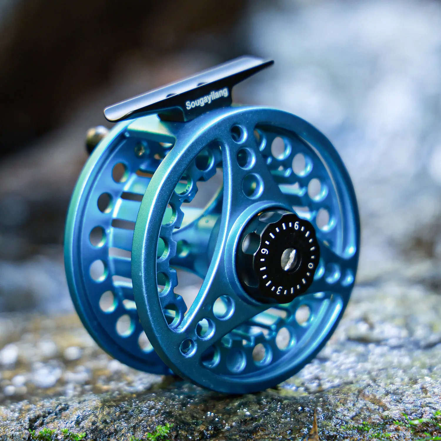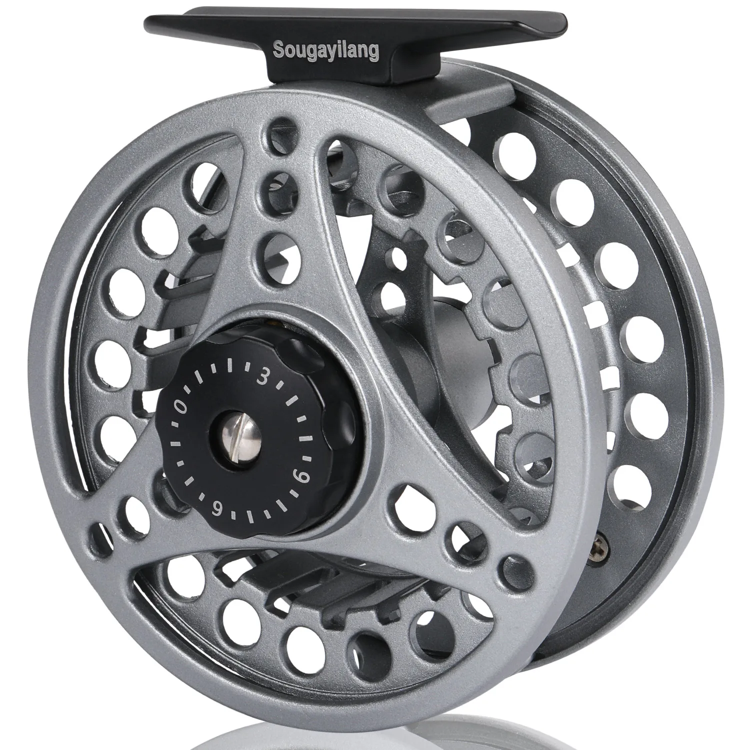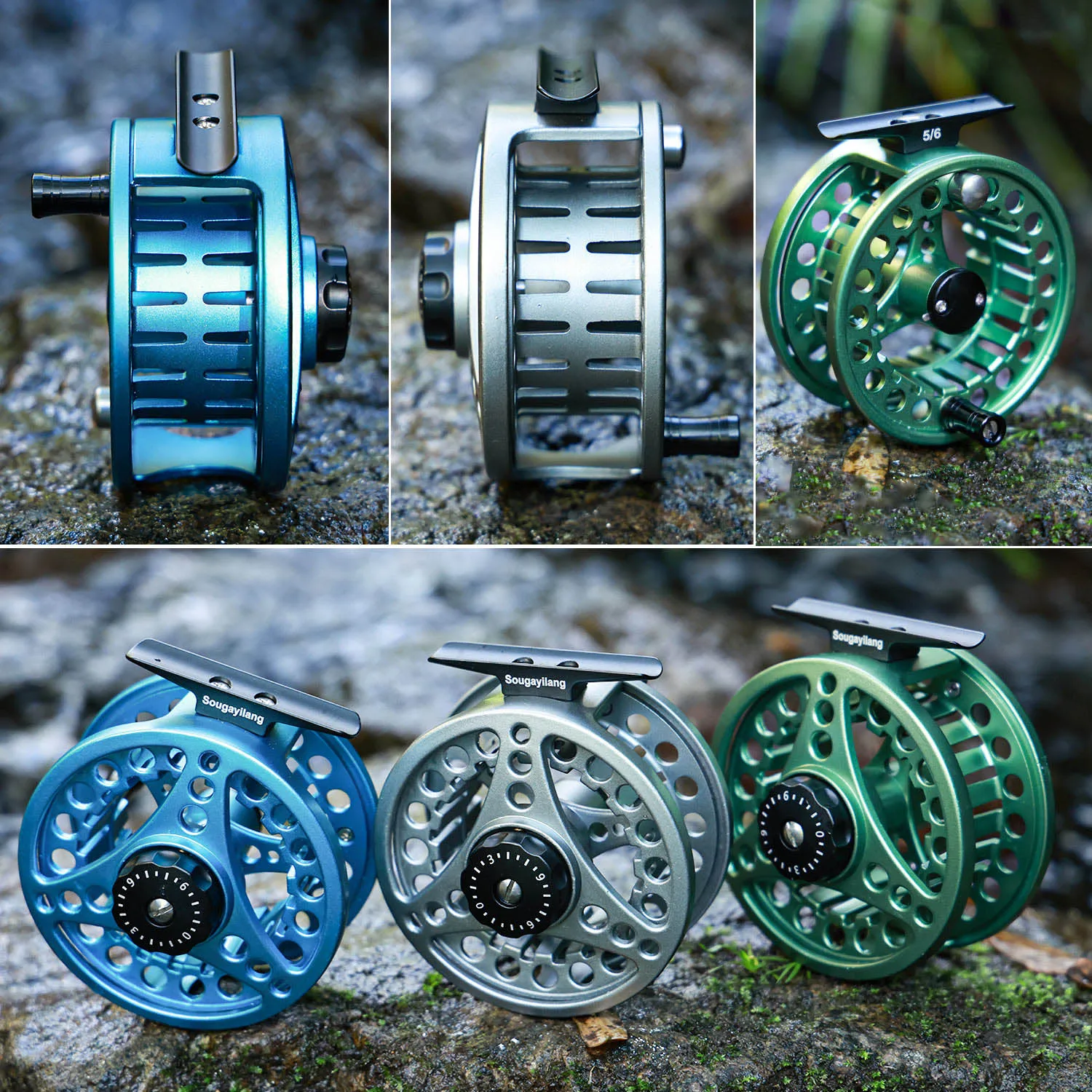 Sougayilang alta calidad 5/6 WT carrete de pesca con mosca cenador grande carretes de pesca con mosca de aluminio carrete de pesca cambiado a mano todo Metal Bady